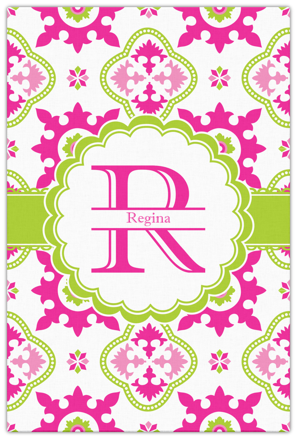 Looking for a girly girl design? This pink and green floral print with a scalloped label is as girly as it gets. We have created this intricate flower pattern in lime green, orchid pink and hot pink. For all of us girly girls and princesses, this is our first choice!