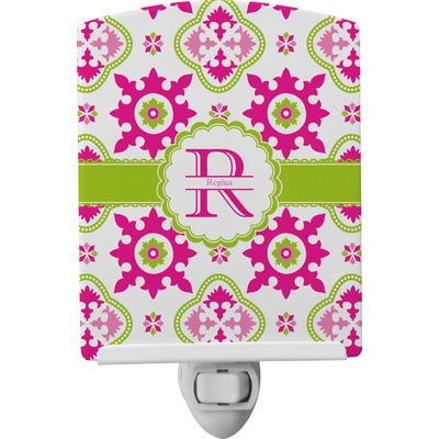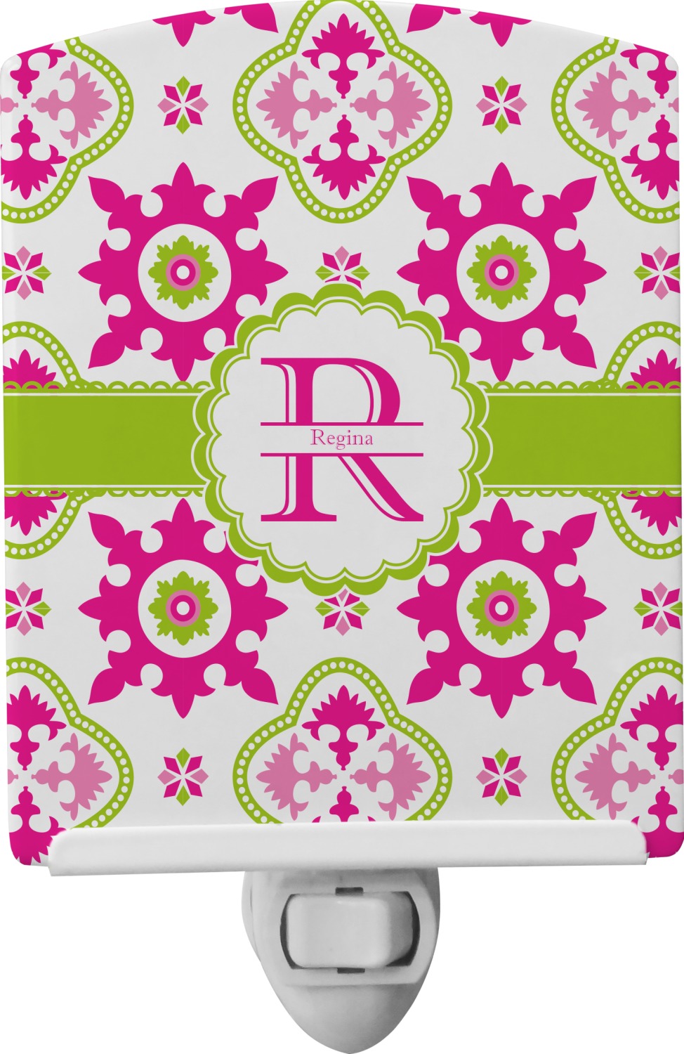 This baby night light is made of durable, ceramic plate that displays your customized design beneath a glossy finish. When this light is turned on, your personalization glows in the dark and offers a bit of light to any room or hallway. The plate also rotates easily. This plug-in night light has a white base with a convenient on and off switch. Additionally, the rotating plug allows you to plug them into US sockets horizontally or vertically. If your child outgrows the design years into the future, you can easily unscrew the plate and use it as a plain nightlight. With your purchase of this outlet night light, we include a 7-watt bulb.