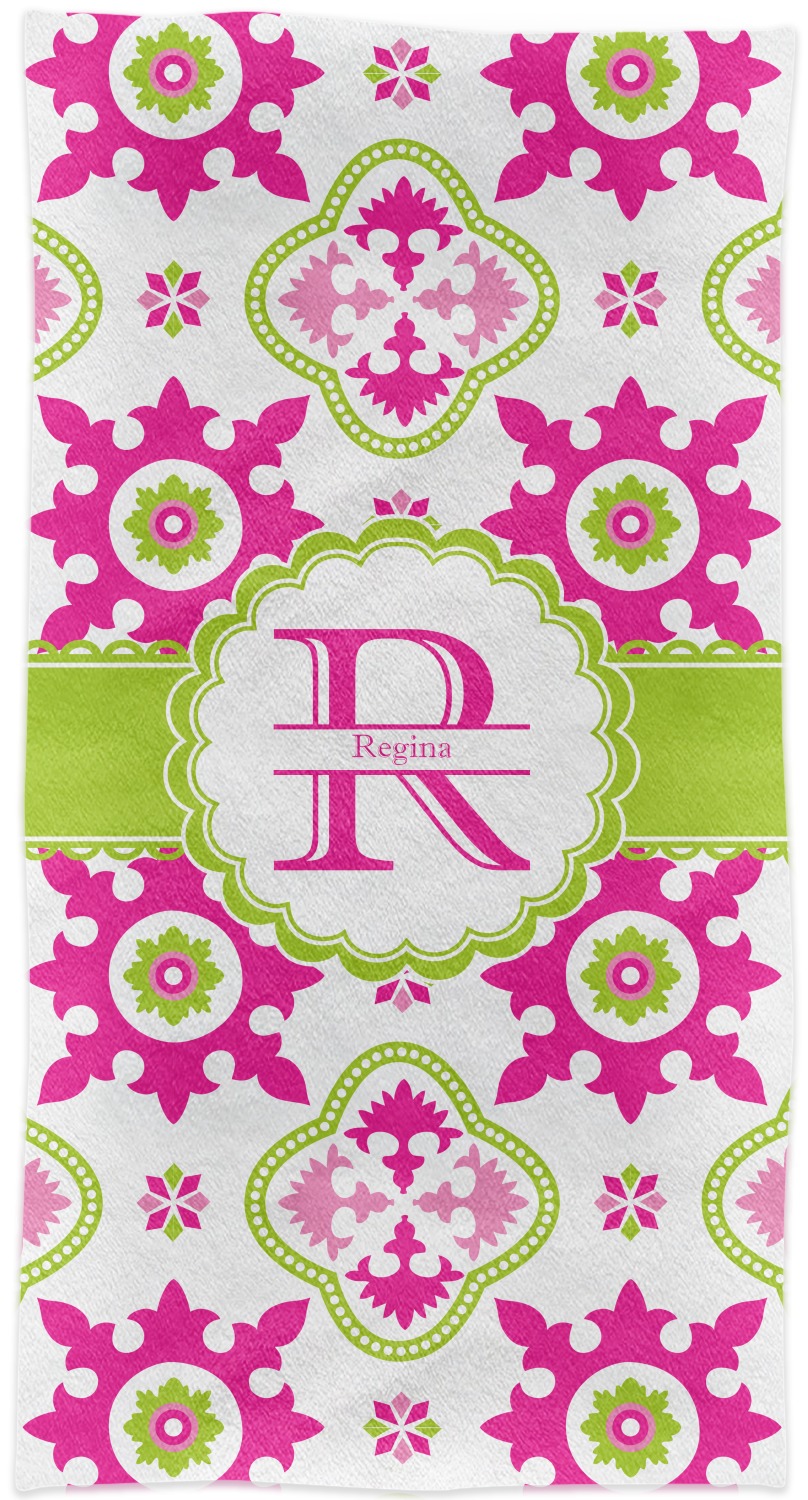 Looking for a girly girl design? This pink and green floral print with a scalloped label is as girly as it gets. We have created this intricate flower pattern in lime green, orchid pink and hot pink. For all of us girly girls and princesses, this is our first choice!