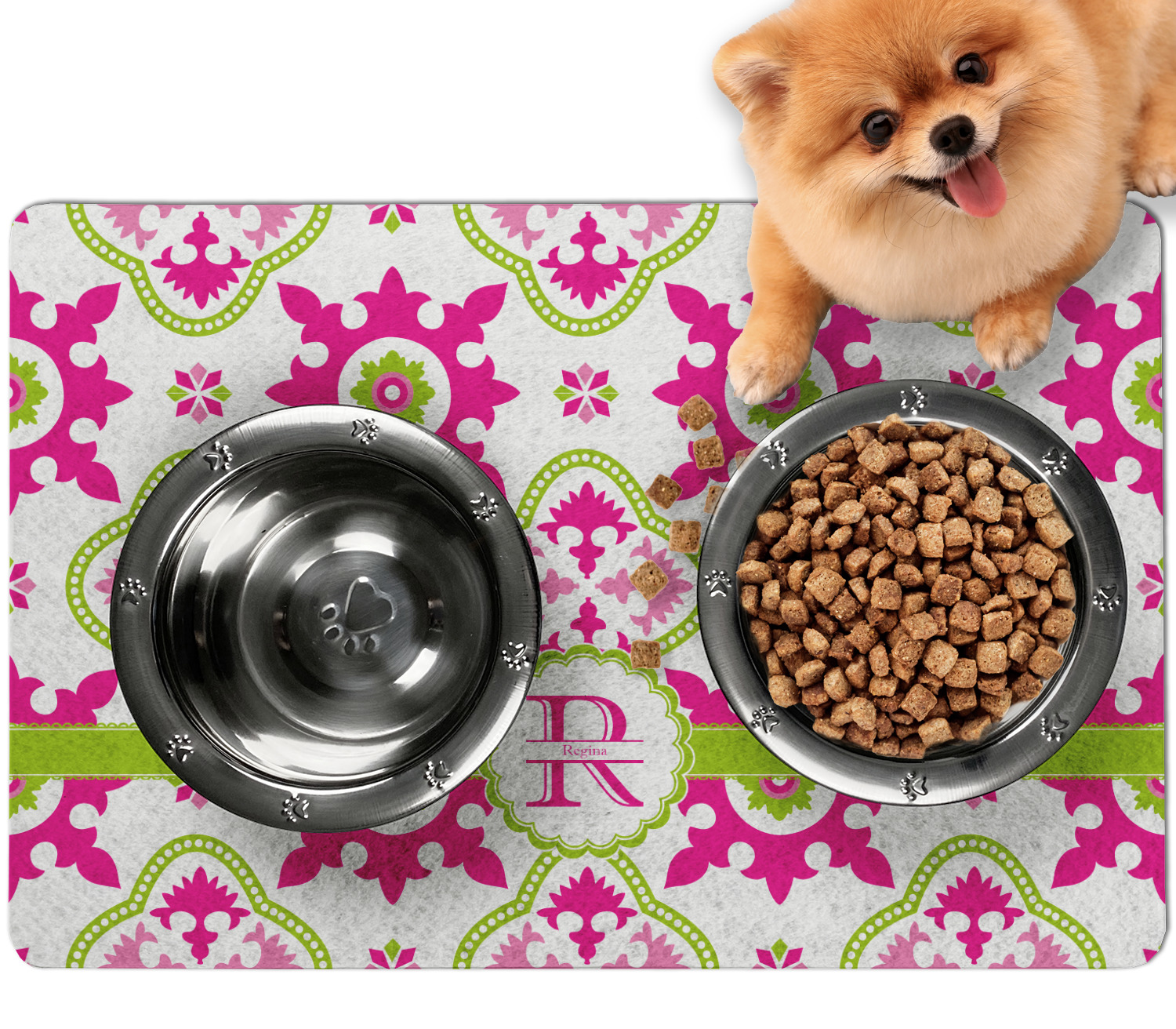 Frustrated with the mess your pets make during mealtime? Personalize a multi-functional dog food mat that prevents spills from reaching your floors, while also incorporating some cute decor to your dog's eating area!