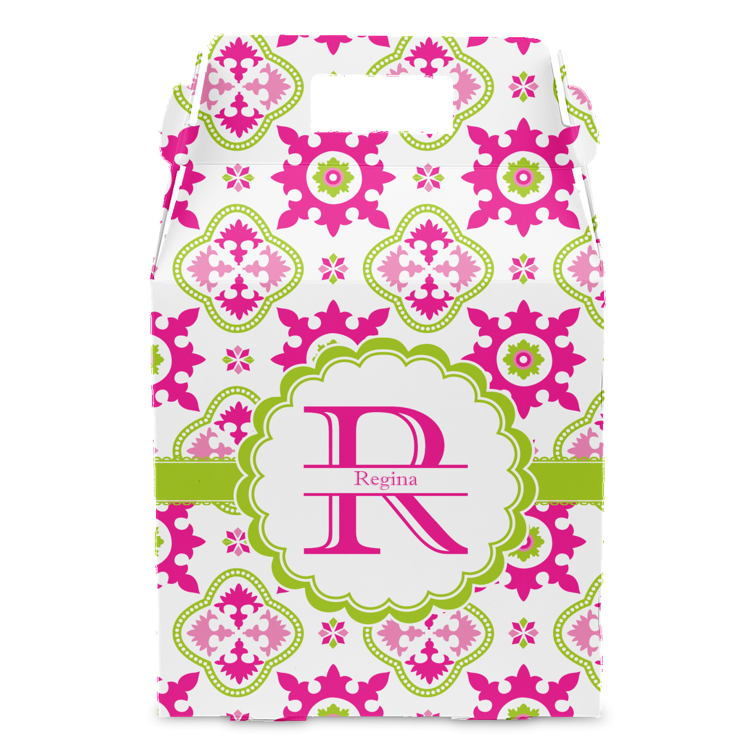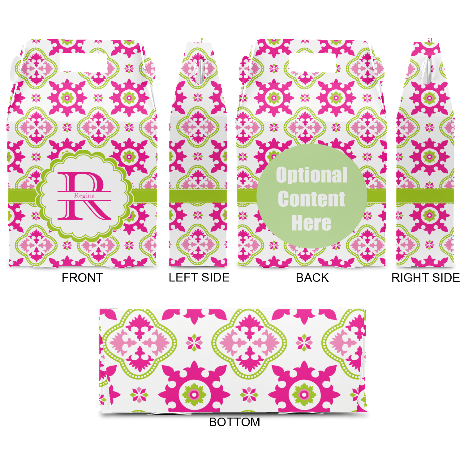 Looking for a girly girl design? This pink and green floral print with a scalloped label is as girly as it gets. We have created this intricate flower pattern in lime green, orchid pink and hot pink. For all of us girly girls and princesses, this is our first choice!