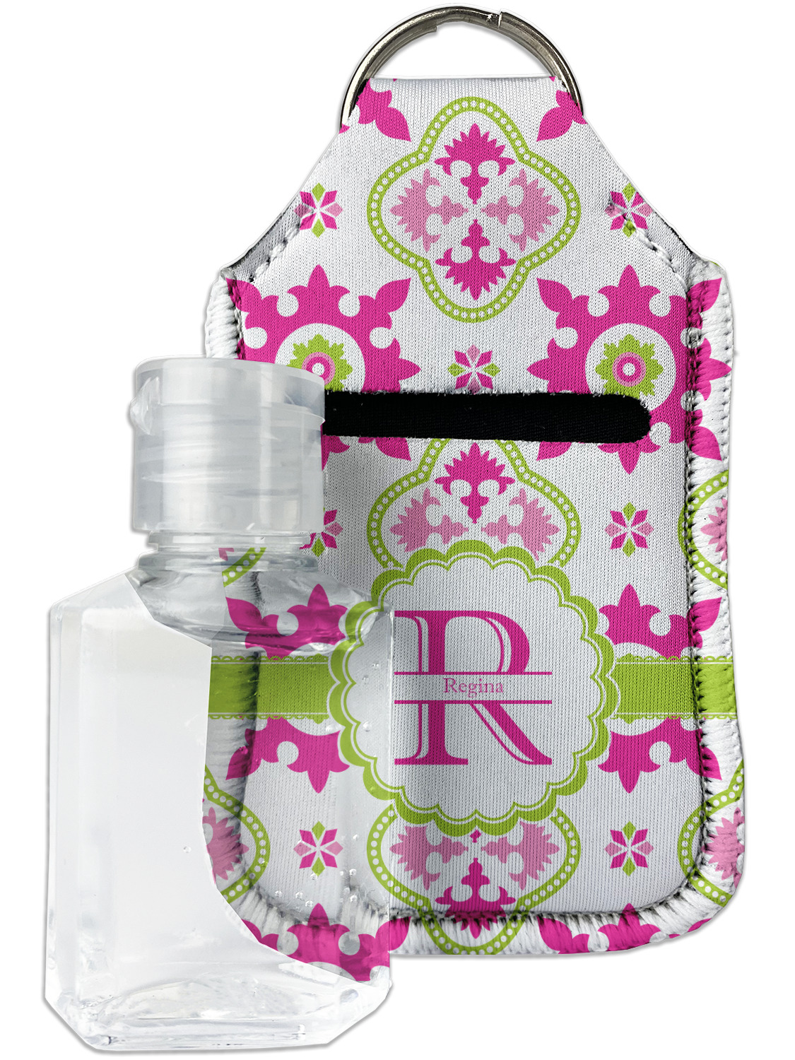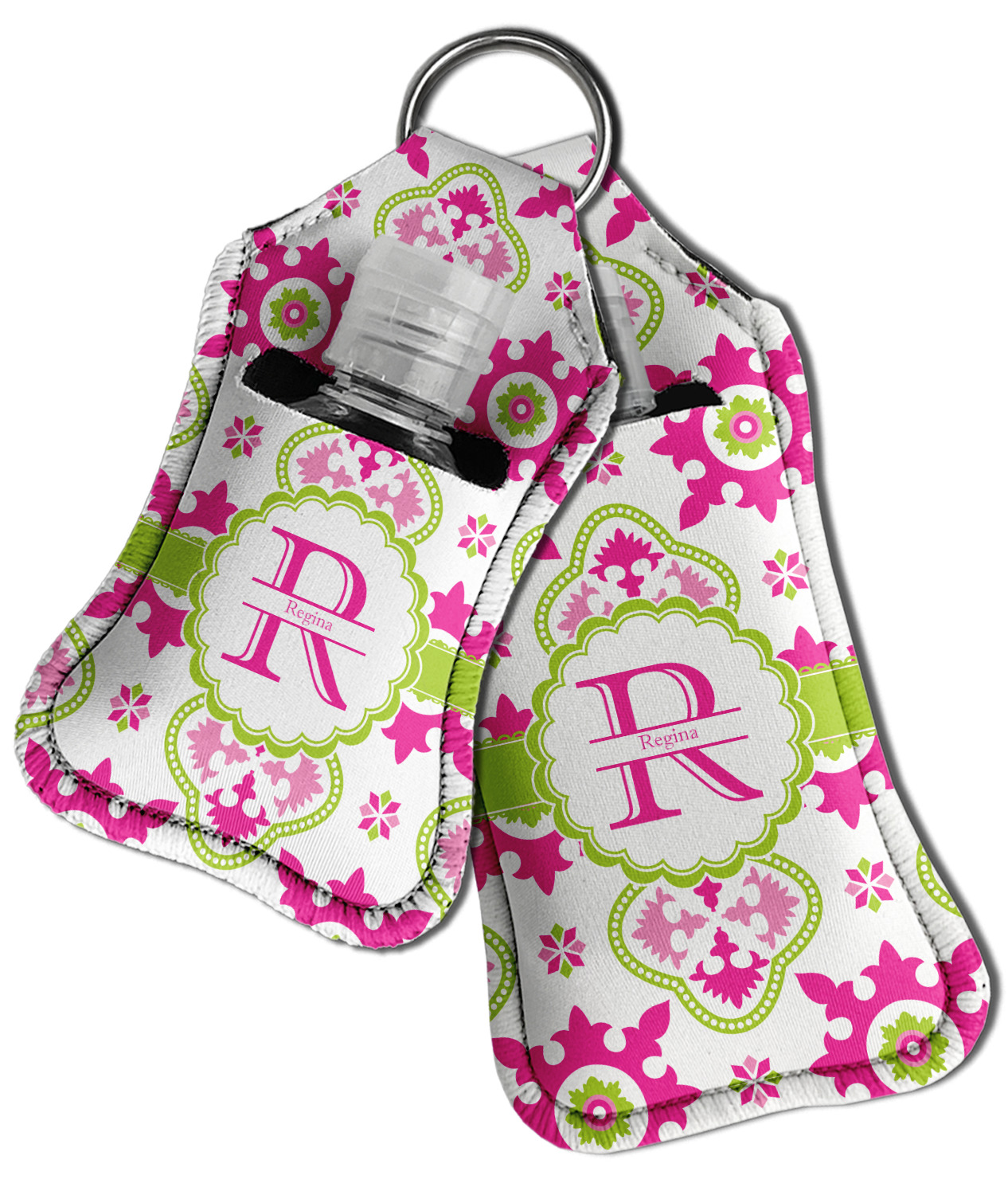 Each hand sanitizer holder comes with its own empty travel-sized, refillable hand sanitizer sure to fit snug in your customized sanitizer case! Our hand sanitizer cases are a durable, yet soft neoprene material sure to last any daily activities or travel agenda. Customize and personalize a hand sanitizer bottle holder with one of our two sizes - small (4.25" x 2.25") or large (5.5" x 2.5"). Each travel sanitizer holder comes with a keyring for attachment on bags, keys, or more!