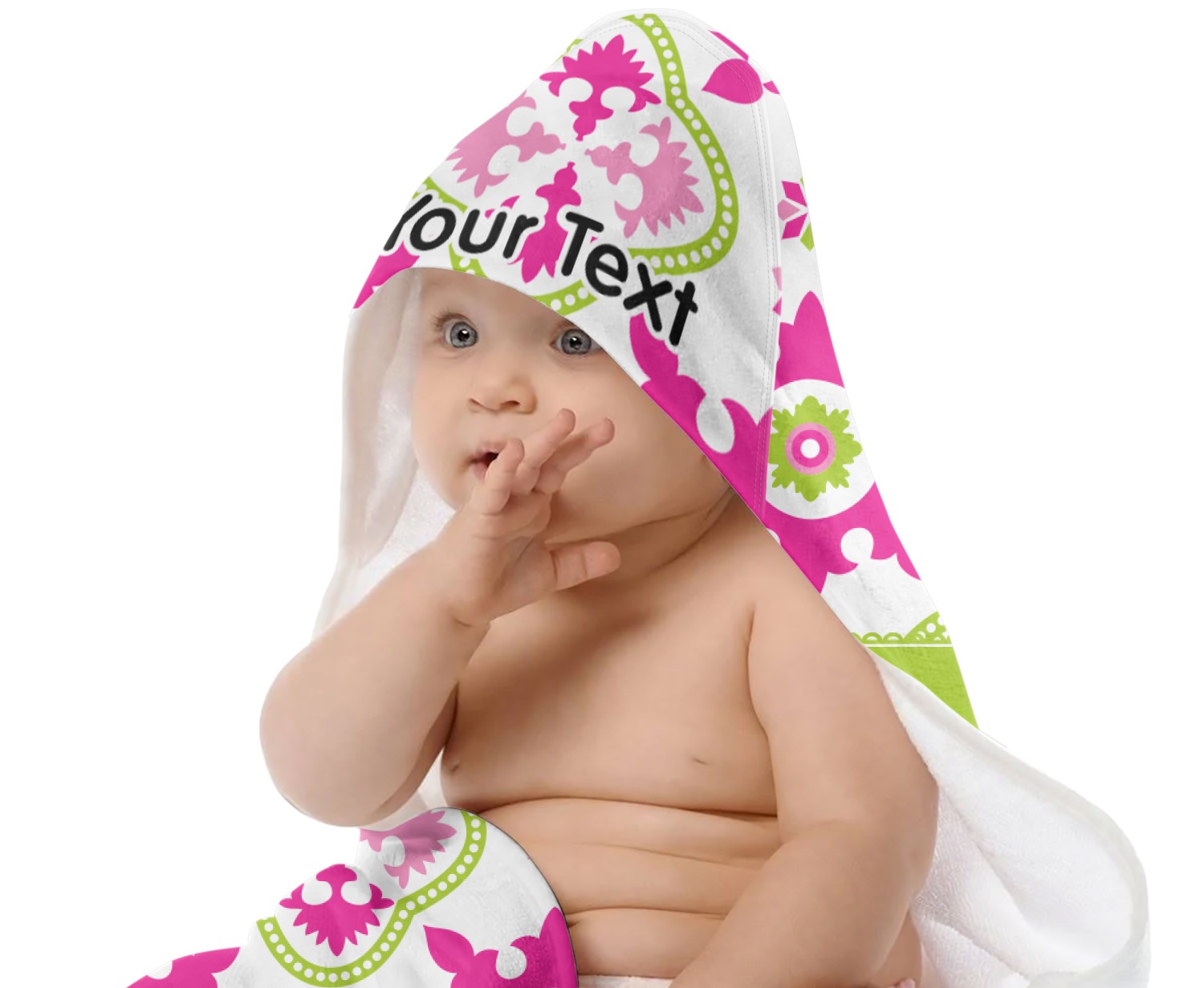 Our hooded baby towels are perfect for infants & newborns for bath, for beach or pool time. These hooded towels can be customized with themes or animals such as elephants, giraffes, dinosaurs, whales and personalized with their name or monogram.