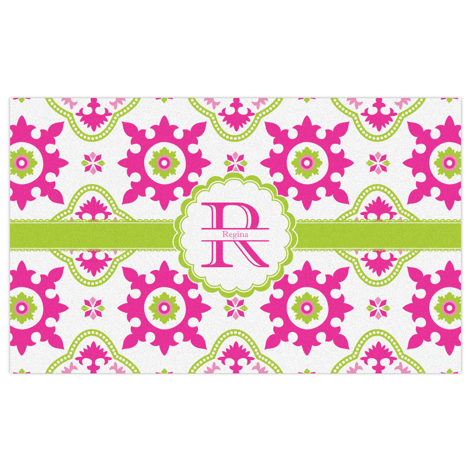Looking for a girly girl design? This pink and green floral print with a scalloped label is as girly as it gets. We have created this intricate flower pattern in lime green, orchid pink and hot pink. For all of us girly girls and princesses, this is our first choice!