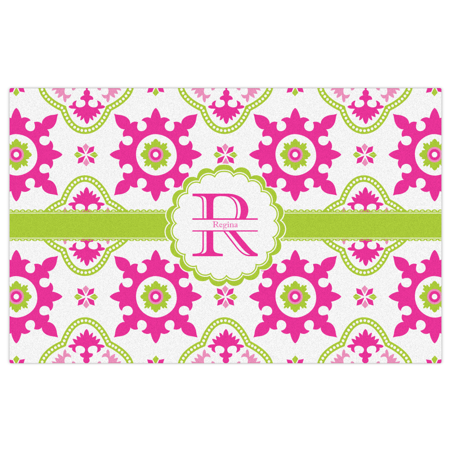 Looking for a girly girl design? This pink and green floral print with a scalloped label is as girly as it gets. We have created this intricate flower pattern in lime green, orchid pink and hot pink. For all of us girly girls and princesses, this is our first choice!
