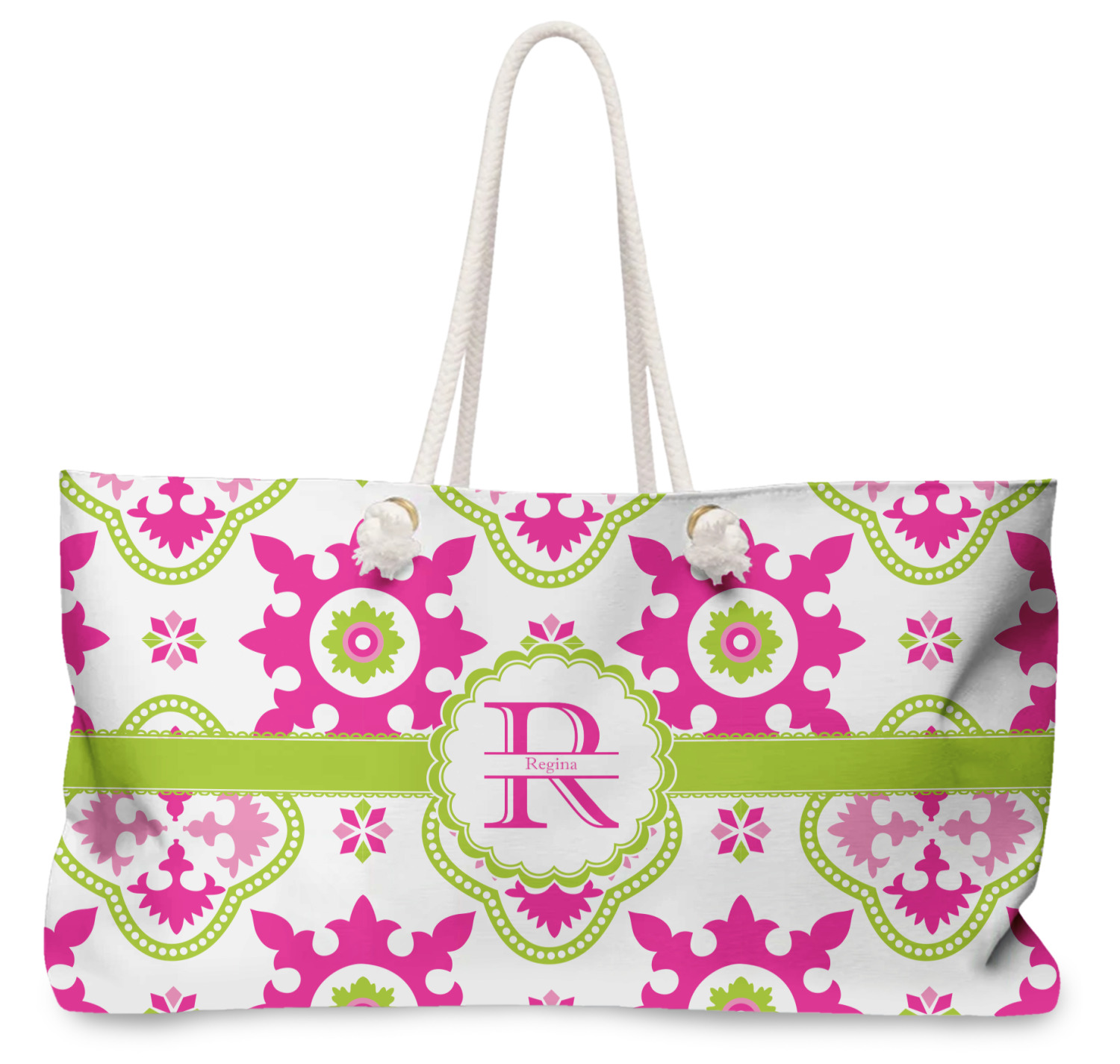 These weekender totes can be customized front and back. The totes are full all over print - so the choice of how background are endless - from beautiful floral or leaf patterns to geometrics or some classic Van Gogh artwork - the possibilities are endless. The totes can also be decorated with photos and logos.