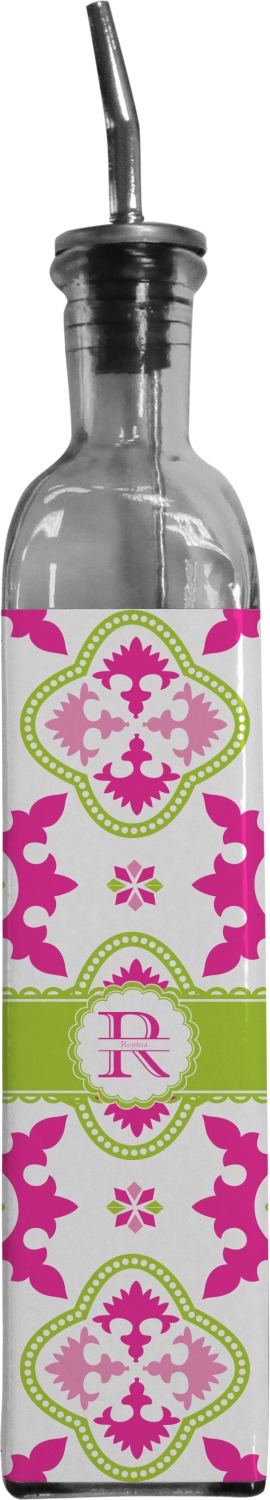 Made from recycled glass in Spain, these oil bottles have a classic, delicate look, and are accompanied by a metal spout for controlled pouring. Each bottle holds approximately 13 ounces and measures at 12 by 2 inches. We customize your glass oil bottle by applying your personalized design on the front and sides, using an adhesive. Our customizable stickers are made from high quality, gloss vinyl and are printed with waterproof, eco-solvent inks. These pieces are machine cut for accuracy and symmetry. The result is a robust, waterproof, adhesive decal that will not fade or deteriorate with time.
