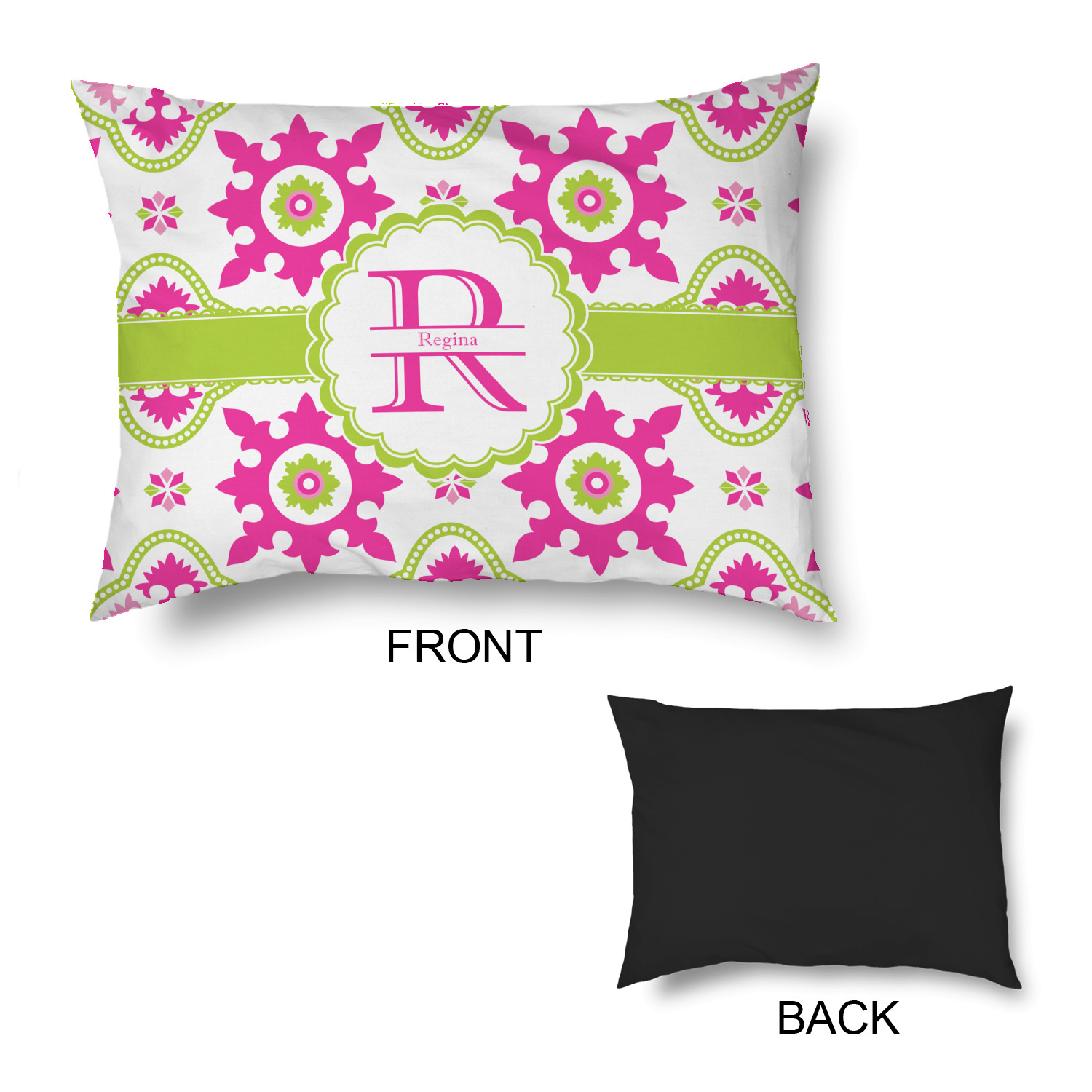 Looking for a girly girl design? This pink and green floral print with a scalloped label is as girly as it gets. We have created this intricate flower pattern in lime green, orchid pink and hot pink. For all of us girly girls and princesses, this is our first choice!
