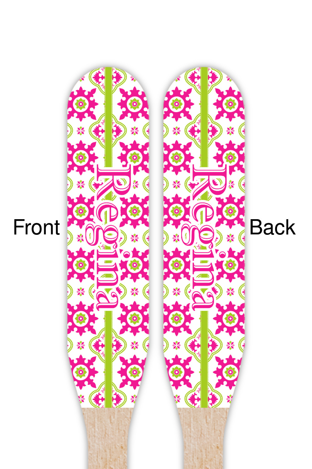 Looking for a girly girl design? This pink and green floral print with a scalloped label is as girly as it gets. We have created this intricate flower pattern in lime green, orchid pink and hot pink. For all of us girly girls and princesses, this is our first choice!