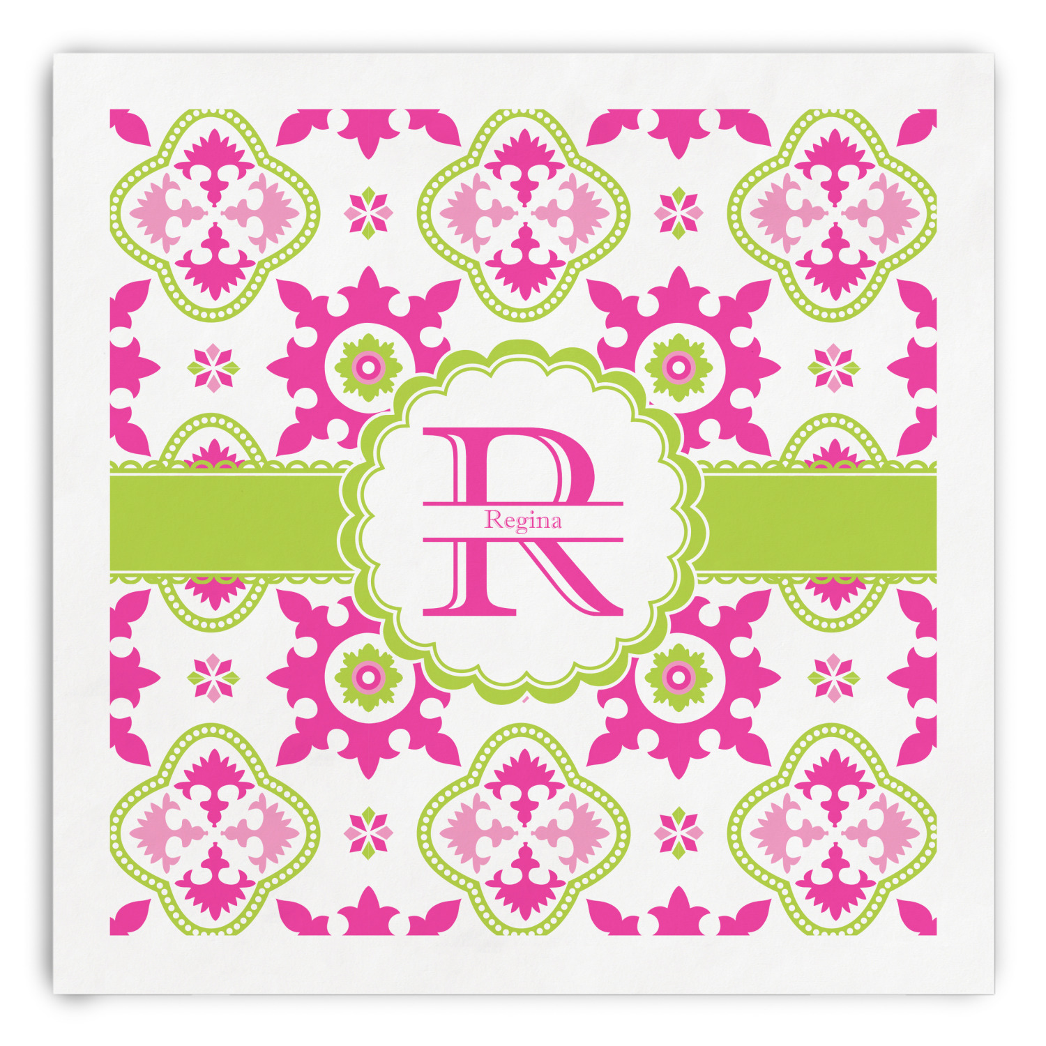 Looking for a girly girl design? This pink and green floral print with a scalloped label is as girly as it gets. We have created this intricate flower pattern in lime green, orchid pink and hot pink. For all of us girly girls and princesses, this is our first choice!