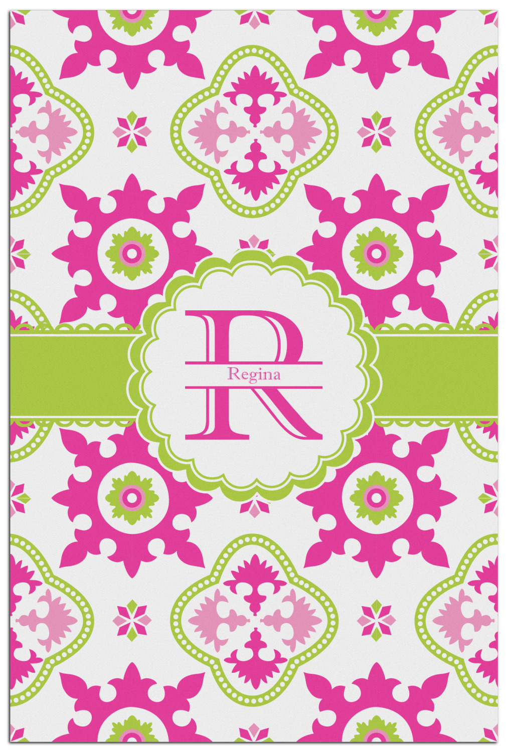 Looking for a girly girl design? This pink and green floral print with a scalloped label is as girly as it gets. We have created this intricate flower pattern in lime green, orchid pink and hot pink. For all of us girly girls and princesses, this is our first choice!