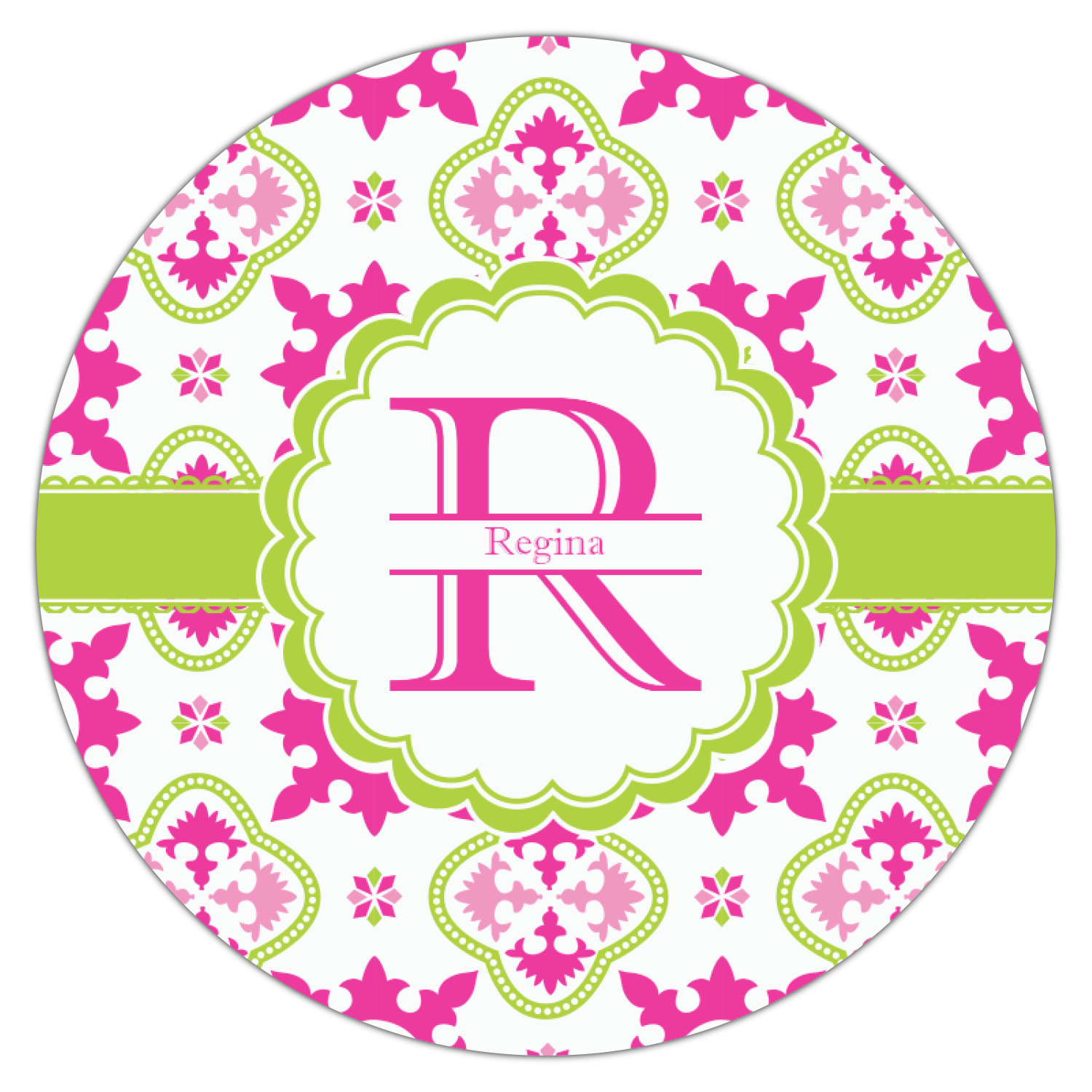 Looking for a girly girl design? This pink and green floral print with a scalloped label is as girly as it gets. We have created this intricate flower pattern in lime green, orchid pink and hot pink. For all of us girly girls and princesses, this is our first choice!