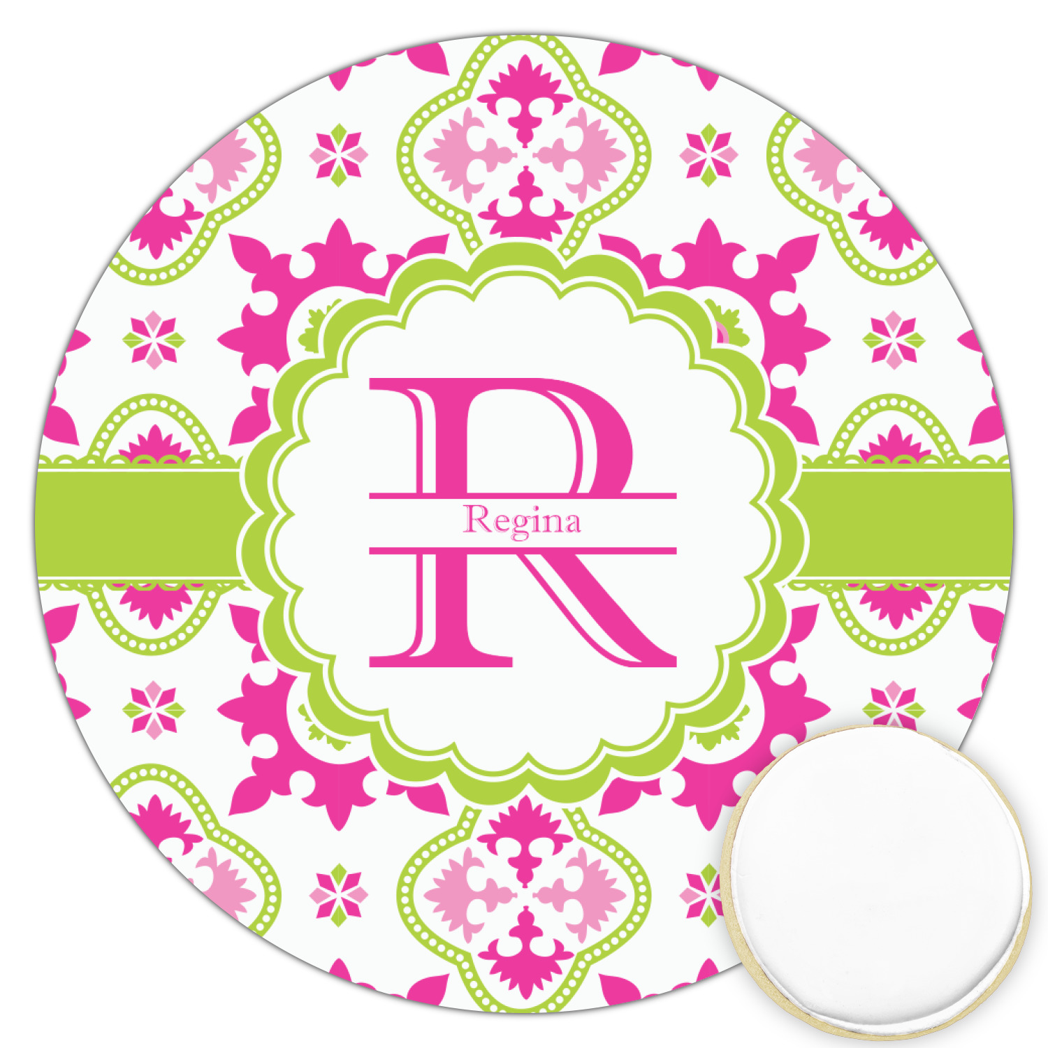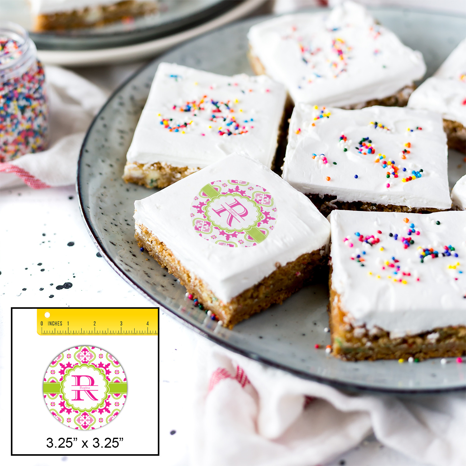 Looking for a girly girl design? This pink and green floral print with a scalloped label is as girly as it gets. We have created this intricate flower pattern in lime green, orchid pink and hot pink. For all of us girly girls and princesses, this is our first choice!