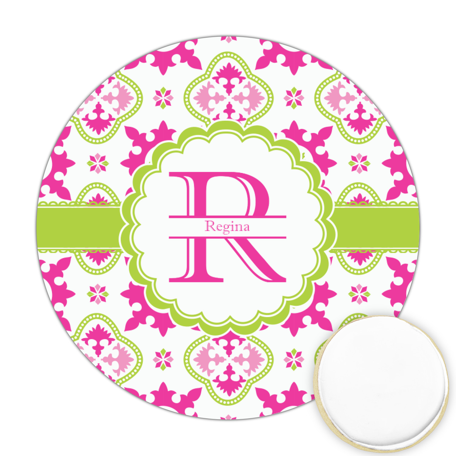 Looking for a girly girl design? This pink and green floral print with a scalloped label is as girly as it gets. We have created this intricate flower pattern in lime green, orchid pink and hot pink. For all of us girly girls and princesses, this is our first choice!