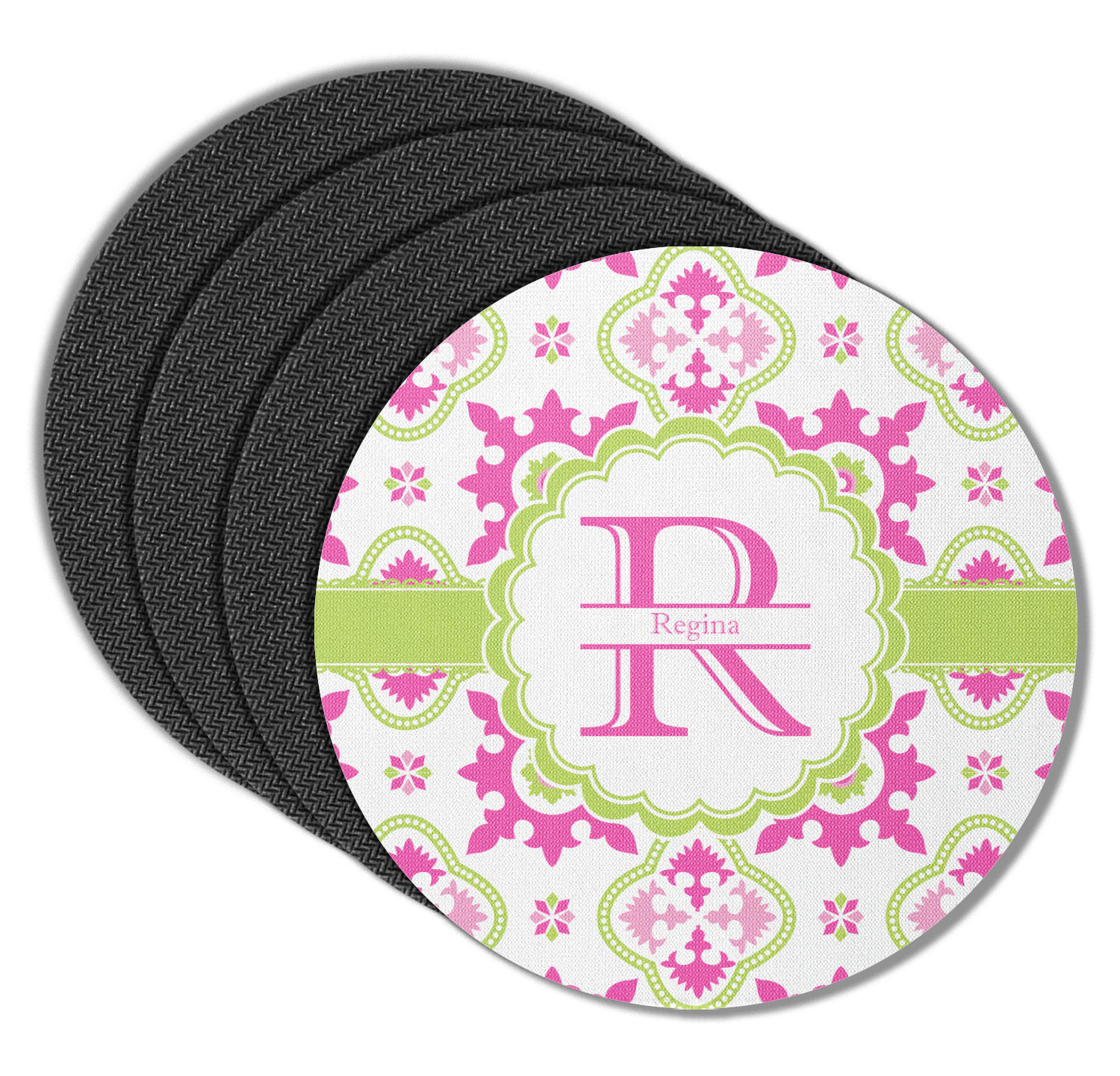 These drink coasters have a smooth, polyester top and a textured, rubber backing on its bottom. The non-slip rubber backing underneath works to keep any spills at bay. At 4 by 4 by 0.25 inches thick, these custom coasters are a suitable size for most drinkware. Your personalization is displayed atop the face of the cup coaster. We sell these rubber coasters in two different shapes: square and round. You can buy each shape as singulars or as a set of 4.