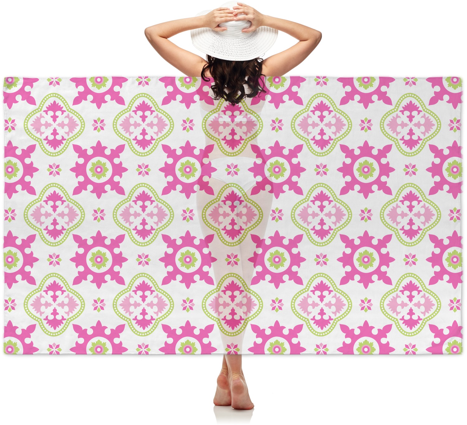 This sarong is 42" x 70" of personalized beauty. It is made of a soft polyester for comfort when against your skin. The material is sheer, so it serves well as a swimsuit cover-up or a shawl. There are so many uses for this wonderful product that you will be sure to find when it is in your hands.