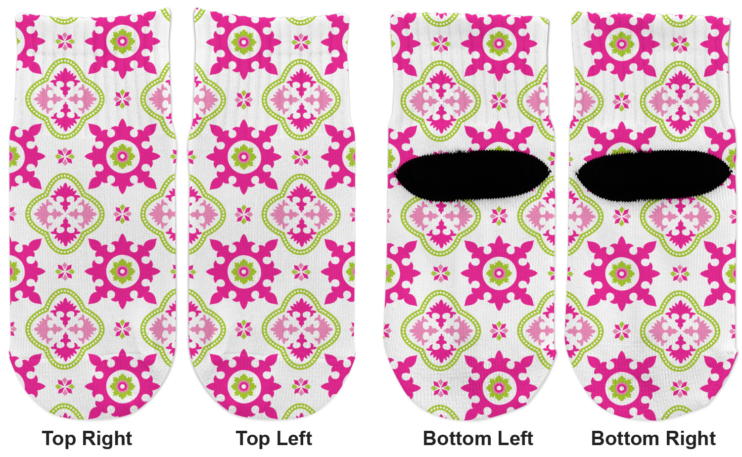 Looking for a girly girl design? This pink and green floral print with a scalloped label is as girly as it gets. We have created this intricate flower pattern in lime green, orchid pink and hot pink. For all of us girly girls and princesses, this is our first choice!