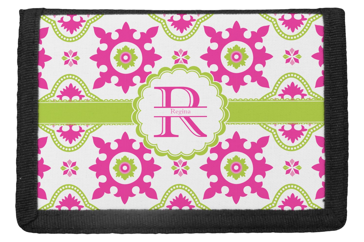 Looking for a girly girl design? This pink and green floral print with a scalloped label is as girly as it gets. We have created this intricate flower pattern in lime green, orchid pink and hot pink. For all of us girly girls and princesses, this is our first choice!
