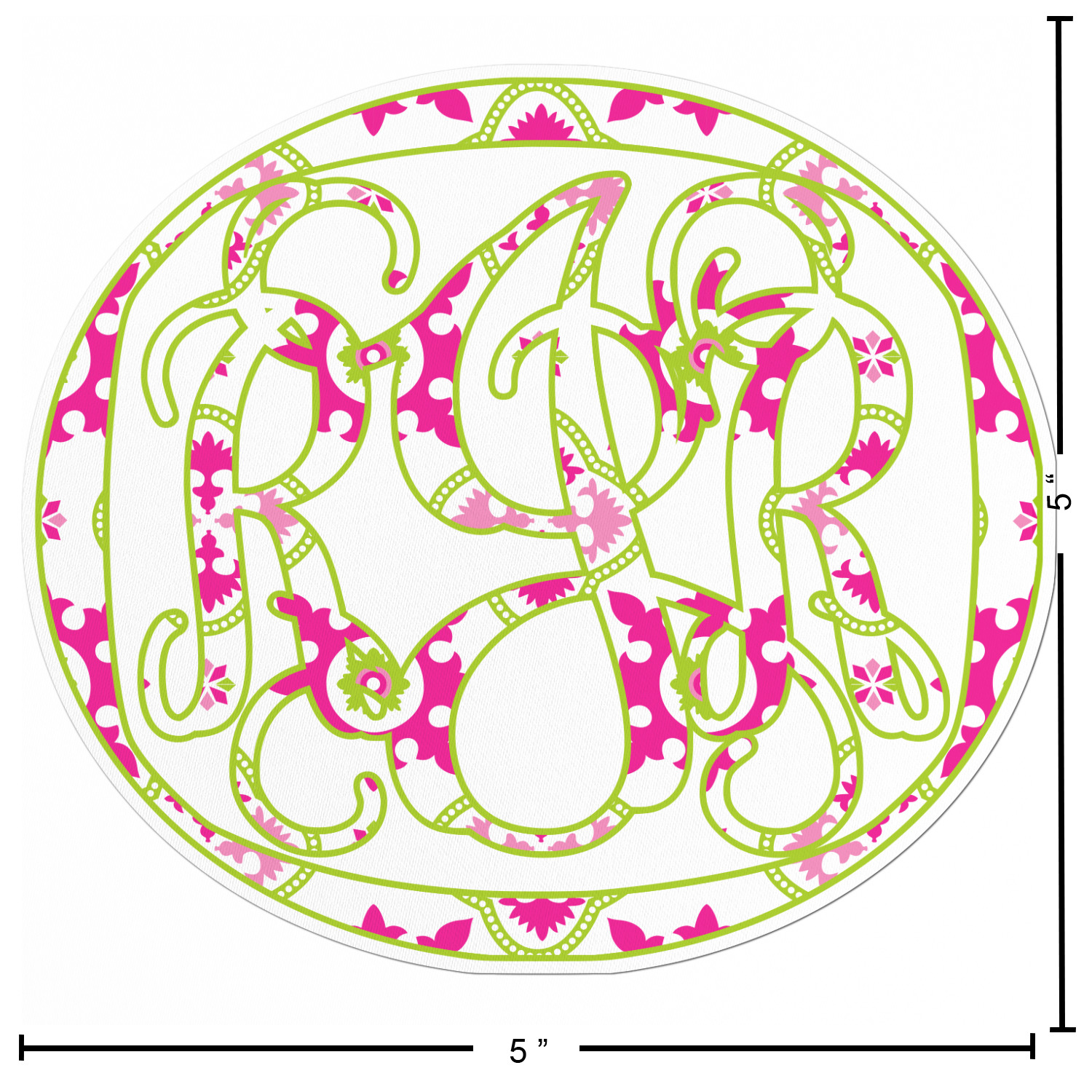 Looking for a girly girl design? This pink and green floral print with a scalloped label is as girly as it gets. We have created this intricate flower pattern in lime green, orchid pink and hot pink. For all of us girly girls and princesses, this is our first choice!