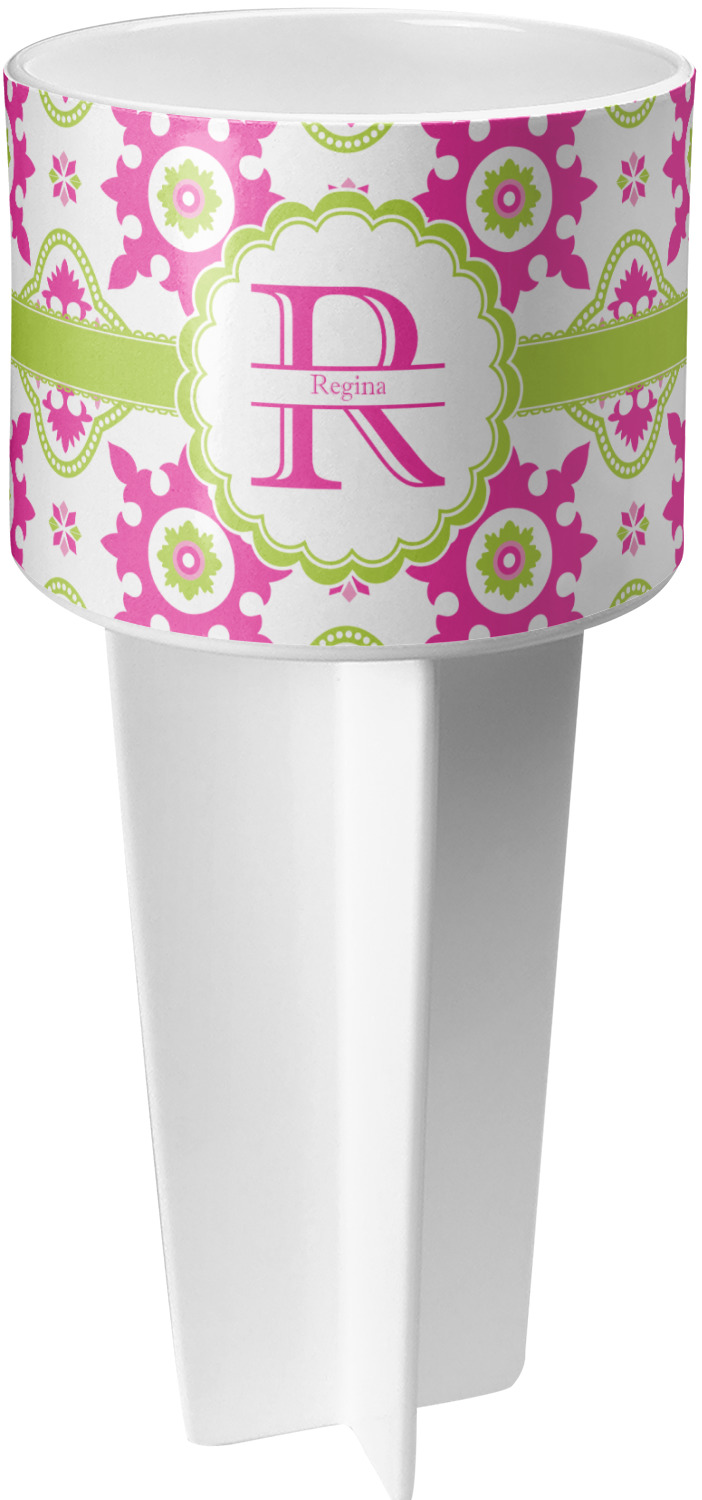This cup holder has a large stake at its bottom that anchors it to the sand or ground below, while the cup holder rests above the stake. The entire drink holder is made of durable plastic and displays your customization around the cup holder portion. We sell these personalized beach spikers in two different colors: black and white.