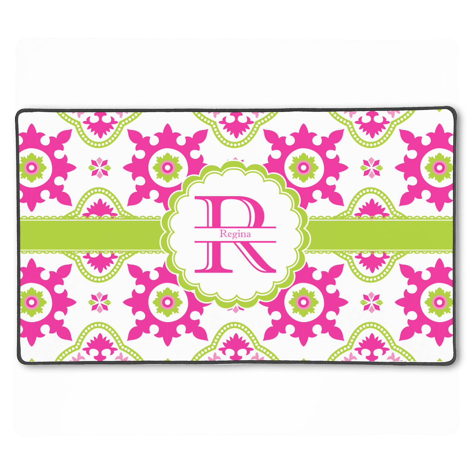 Looking for a girly girl design? This pink and green floral print with a scalloped label is as girly as it gets. We have created this intricate flower pattern in lime green, orchid pink and hot pink. For all of us girly girls and princesses, this is our first choice!