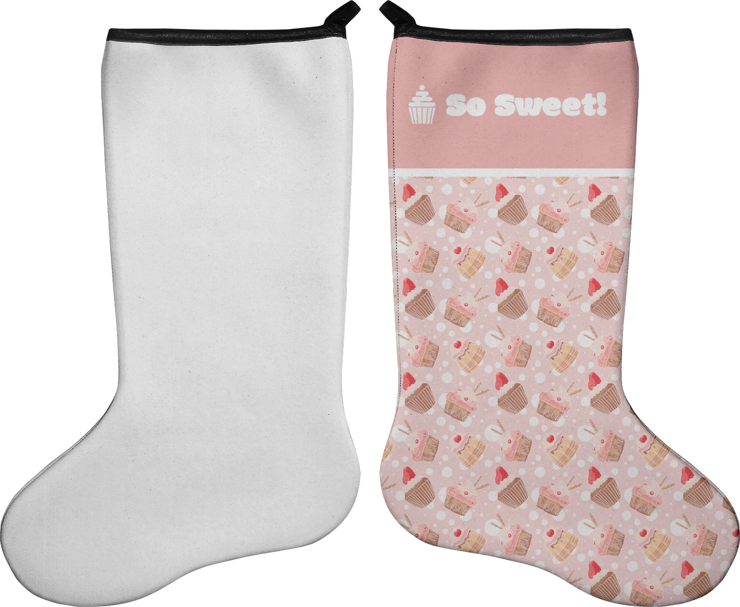 These 17" x 11" stockings are made of neoprene and have a black trim to give them a fantastic finished look. Your very own design is printed right onto the stocking, either single sided with white on the back or double sided where can use the same or different designs / patterns on the front and the back - the choice is yours. At the top of the stocking is a 2" loop for hanging.