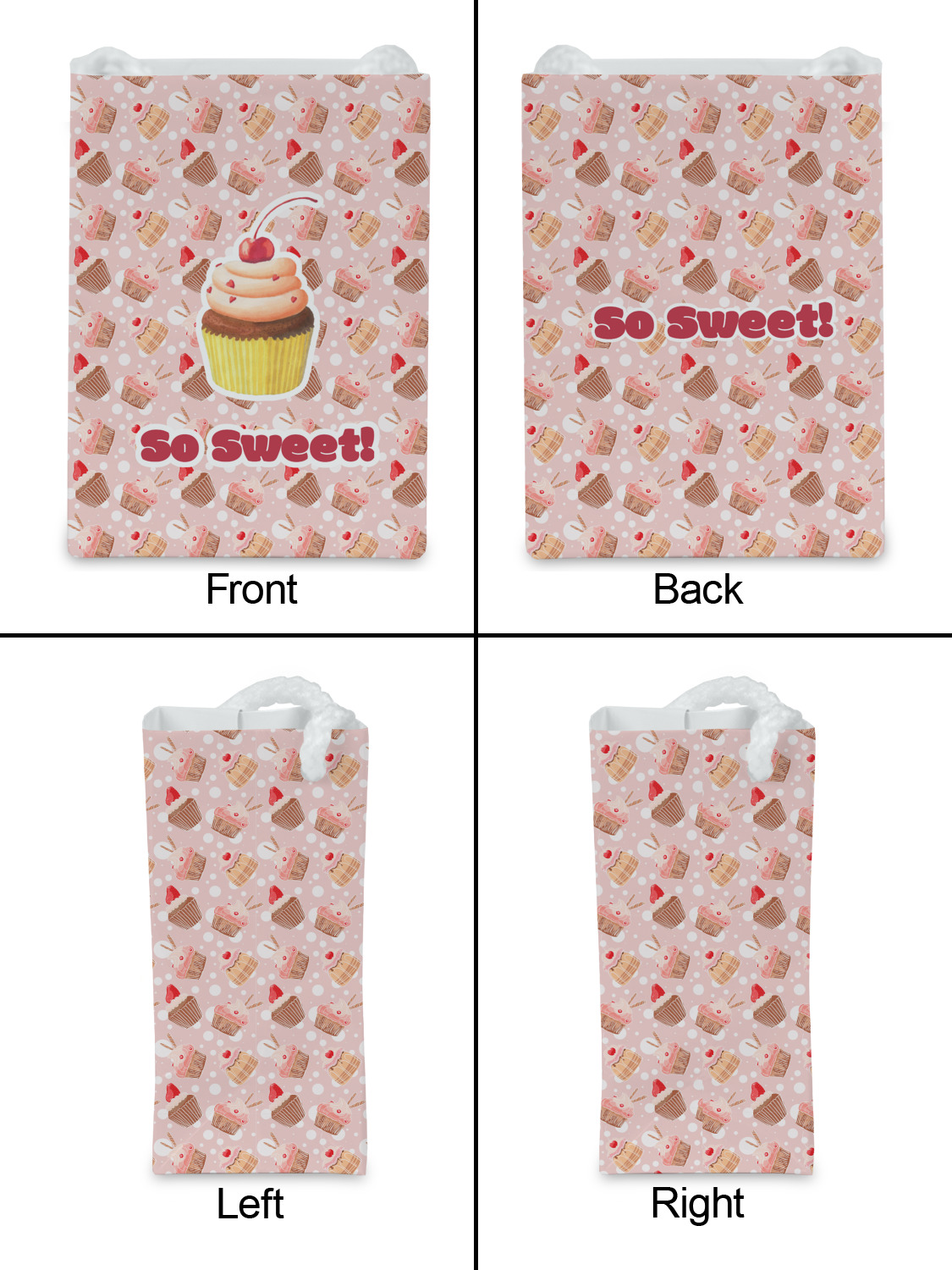 These jewelry gift bags are available in two finishes - matte or gloss. The are digitally printed in full color, then cut down to size, scored & folded. A single handle is attached.