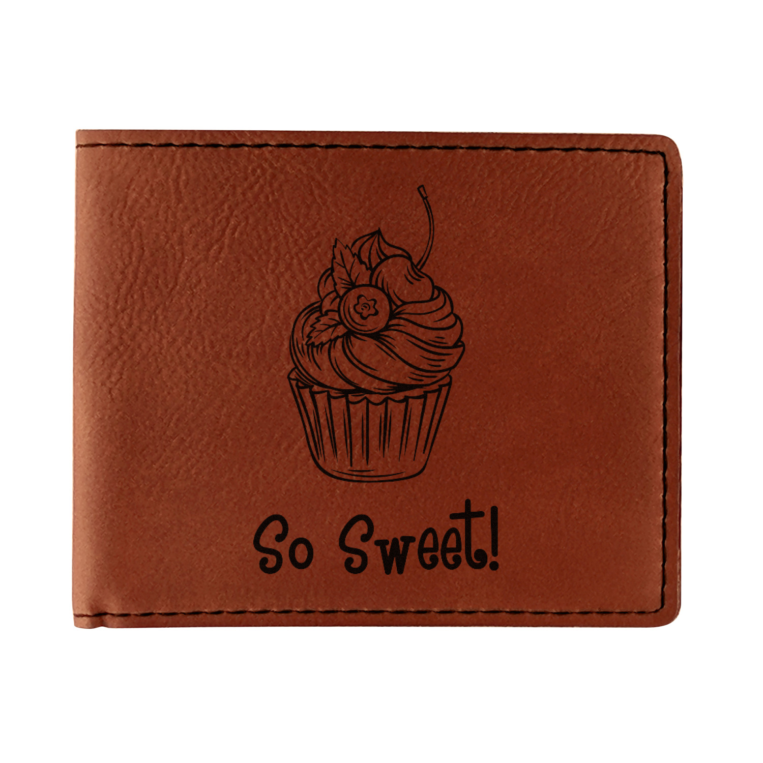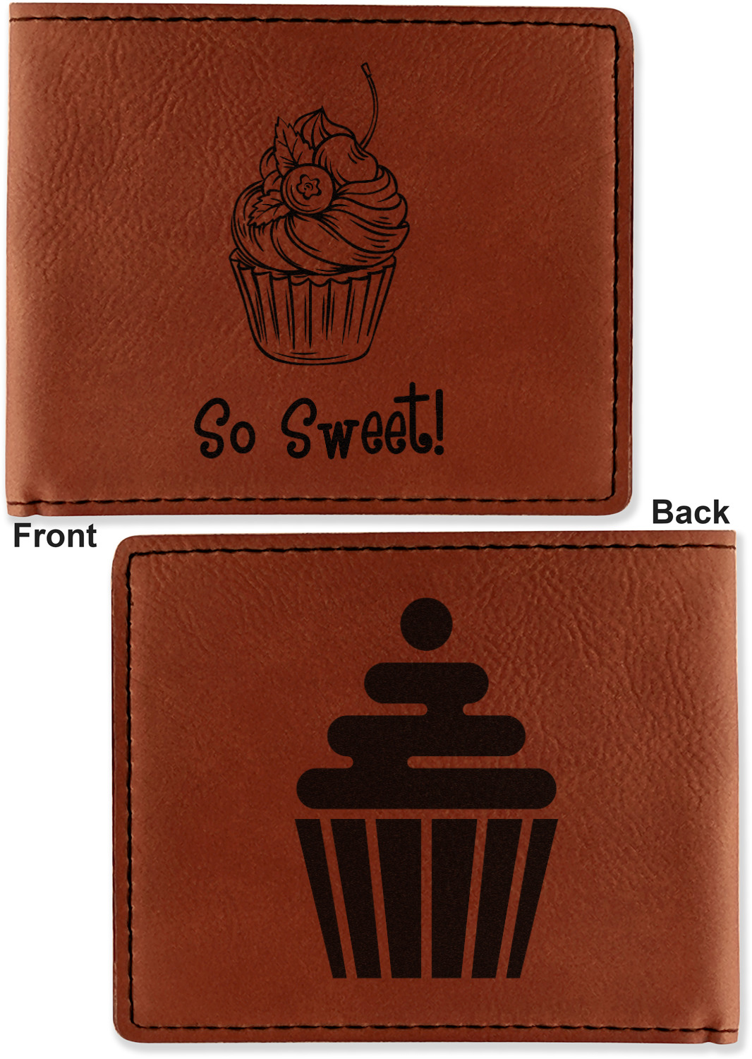 Your bifold wallet will be personalized by laser engraving, which will be a black color on the wallet. Choose a graphic, text, or monogram to personalize your wallet. There are thousands of choices in our design center.