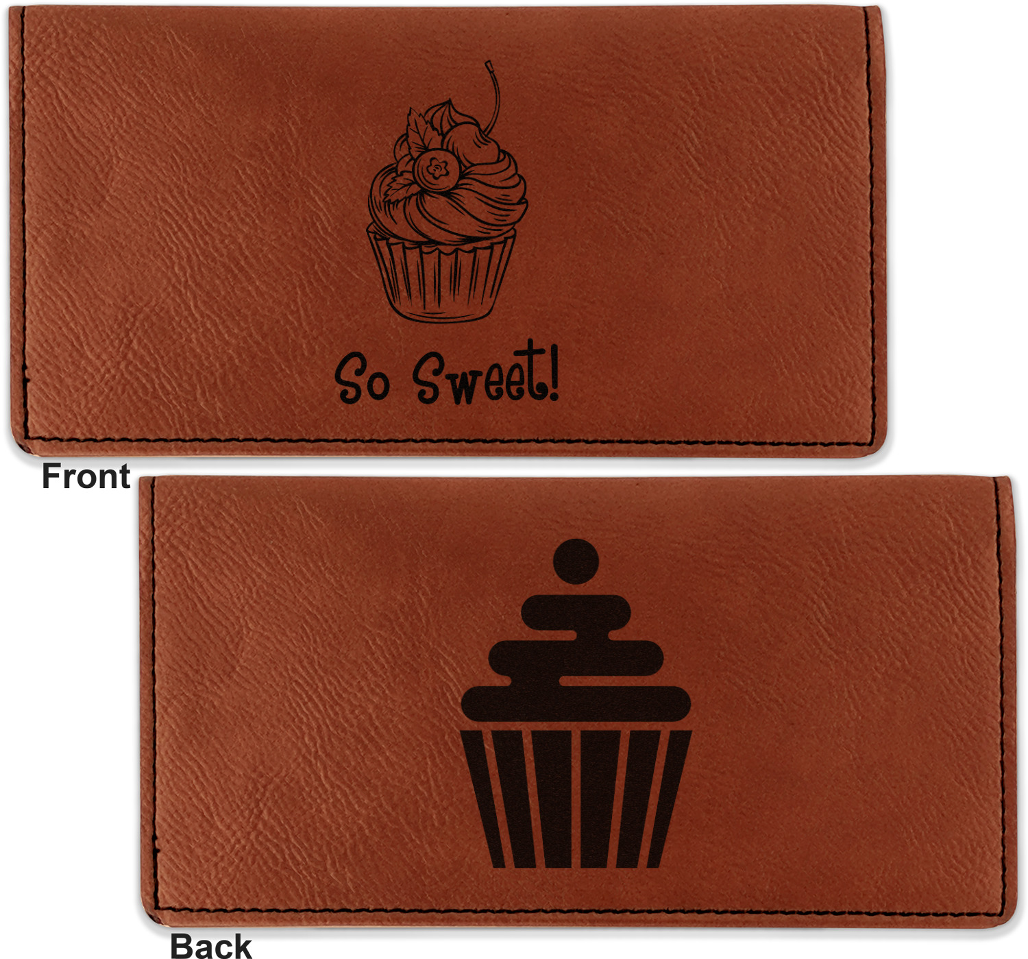 Go into our design center to start personalizing. Your checkbook cover will be laser engraved, making the graphic or text a black color. Choose a fun saying, monogram, or font to go on your checkbook cover. You have the opportunity to do it double or single sided.