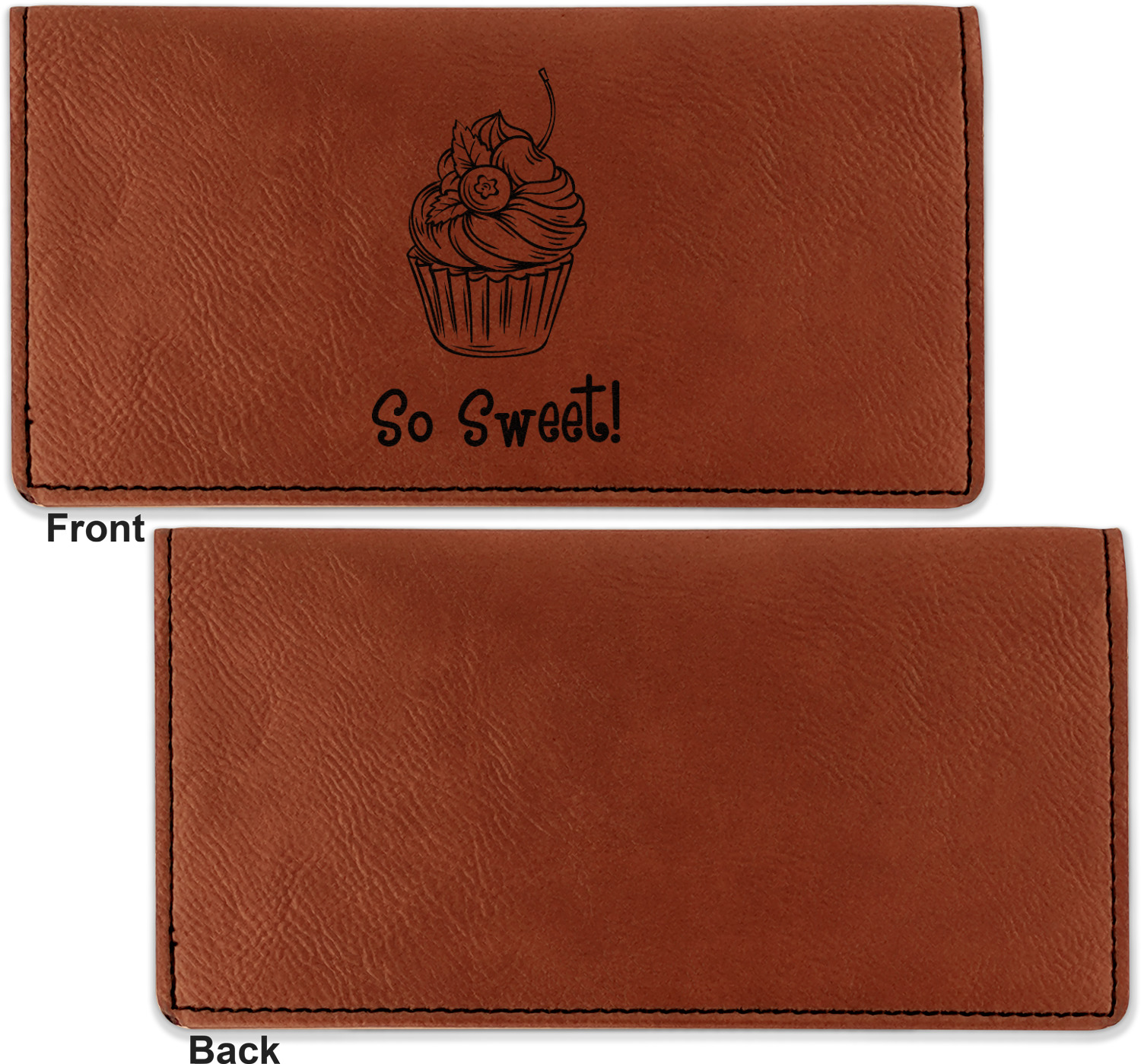 Go into our design center to start personalizing. Your checkbook cover will be laser engraved, making the graphic or text a black color. Choose a fun saying, monogram, or font to go on your checkbook cover. You have the opportunity to do it double or single sided.