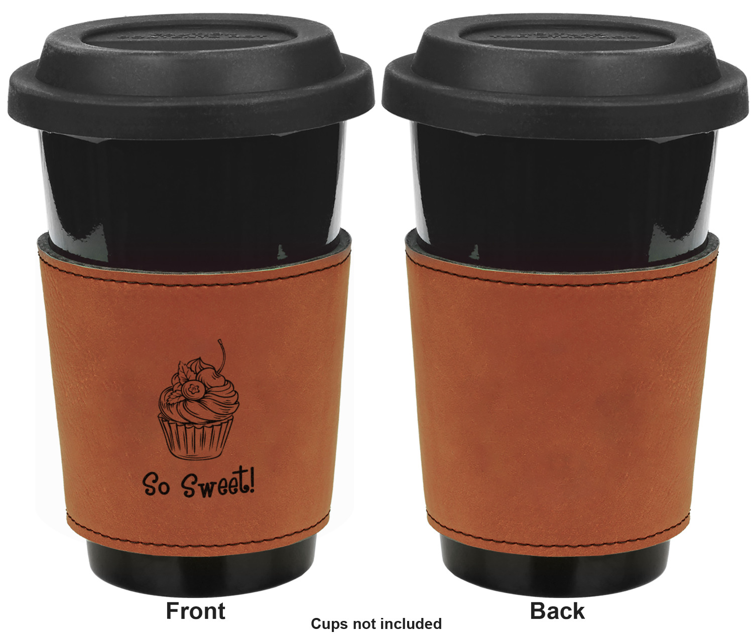 This cup sleeve is made from a suave, cognac-brown leatherette and finished with an intricate, black stitch. The interior of this can sleeve is fabricated from a thin foam material to help insulate your mug's contents. The sleeve is specifically made to suit tapered glasses or mugs, so the top's diameter is 3.5 inches, while the bottom's diameter is 2.75 inches. Your customized design will be laser engraved into the leatherette, leaving behind crisp, black imprint. With these products, we provide you with the option of engraving the front and back, or the front only.