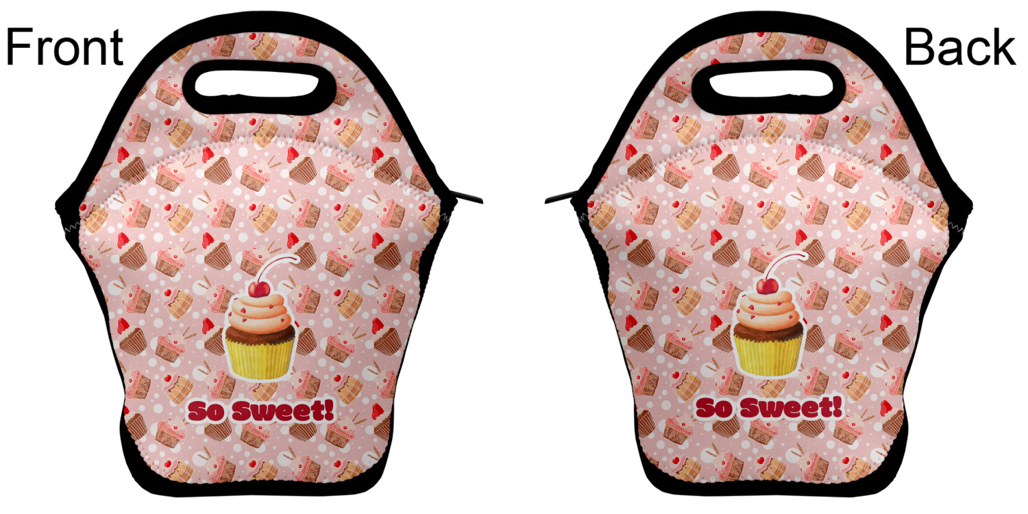 Our personalized lunch bags are made from a strong neoprene, and secure with a zipper closure that lines the top of the bag.The edges of the neoprene are sewn together with a heavy duty stitch, adding to the durability of the bag. The is accompanied by a reinforced handle at its top, for the easy transport of your lunch. We display your personalization across both the front and back of this neoprene lunch bag, while the remaining sides are a sleek black in color. Each bag measures at 13.5 inches tall, and 11.5 inches wide.