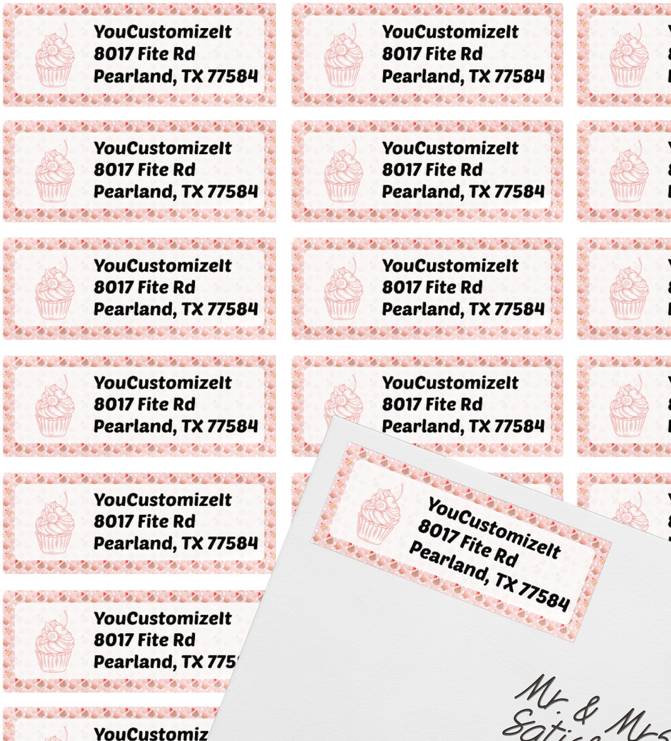 Made of a professional grade, vinyl sticker material, these custom return address labels are shaped into rectangles, but the beautifully rounded edges give the address labels an elegant finish. These mailing labels are printed onto three sheets, with each sheet having 27 labels, resulting in 81 labels in total. With our return address stickers, you're able to customize your address (which is printed on a white background), the graphic accompanying your address, and the border surrounding your address.