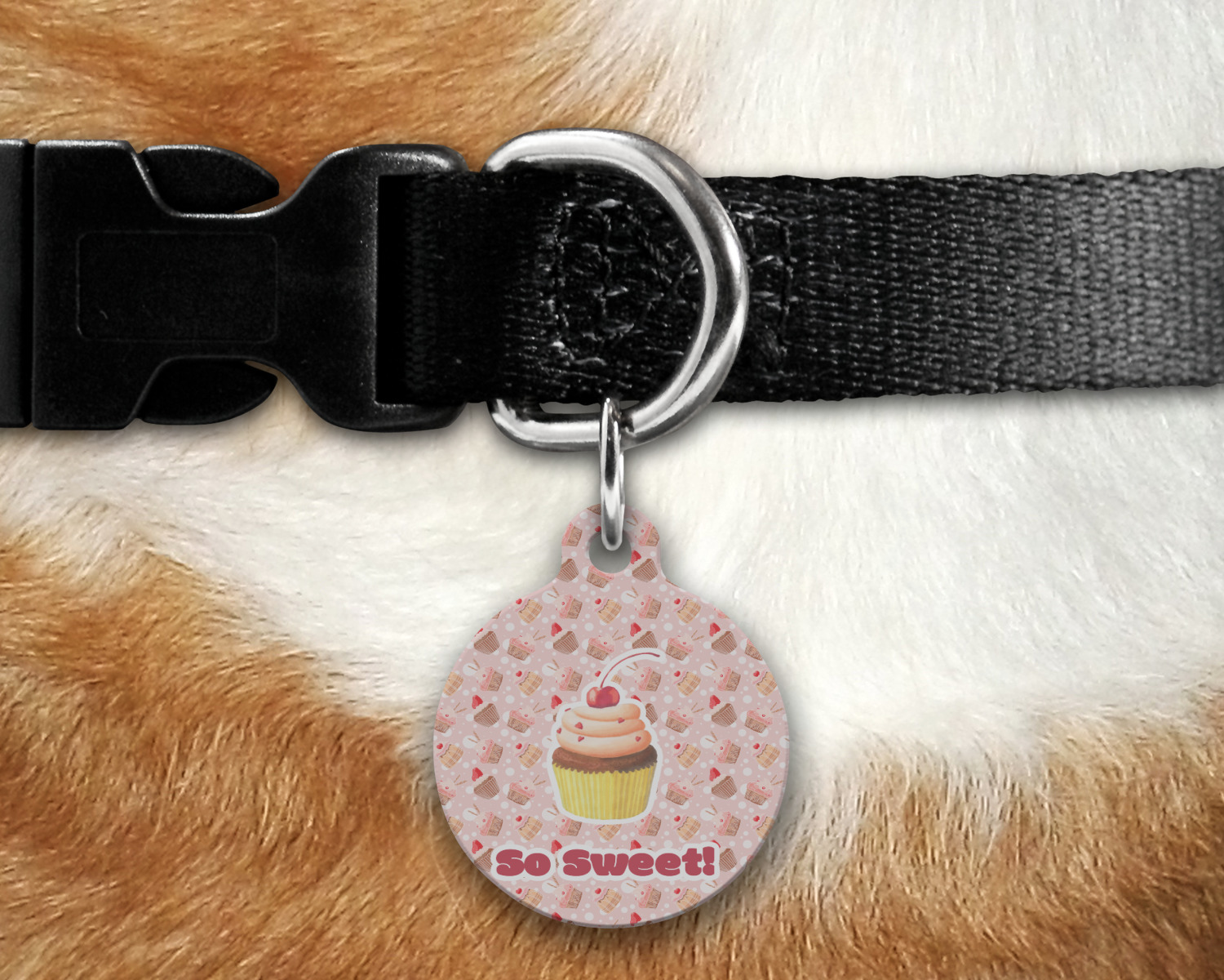 Go ahead; skip the monotony of plain pet ID tags with your very own, customized & personalized, round pet tag! This pet ID tag, fitting for both cats and dogs, will catch the eye of any onlooker (humans, canines, and felines, alike!) and accentuate your pet's individual personality.