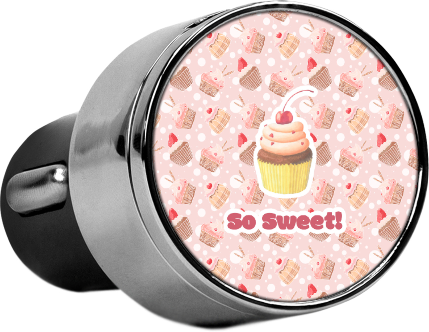 This car charger adapter converts your cars bland cigarette lighter into a decorative, personalized, and operational USB charging port. Made of solid, silver-plated metal, these chargers feature a flip-open lid that both displays your customized design and conceals two USB ports. The metal lid of the USB car charger adapter is 1.5" in diameter and seals due to a small, ingrained magnet on both the charger and its lid. The cigarette lighter insert, itself, is colored black.
