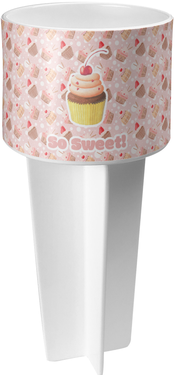 This cup holder has a large stake at its bottom that anchors it to the sand or ground below, while the cup holder rests above the stake. The entire drink holder is made of durable plastic and displays your customization around the cup holder portion. We sell these personalized beach spikers in two different colors: black and white.