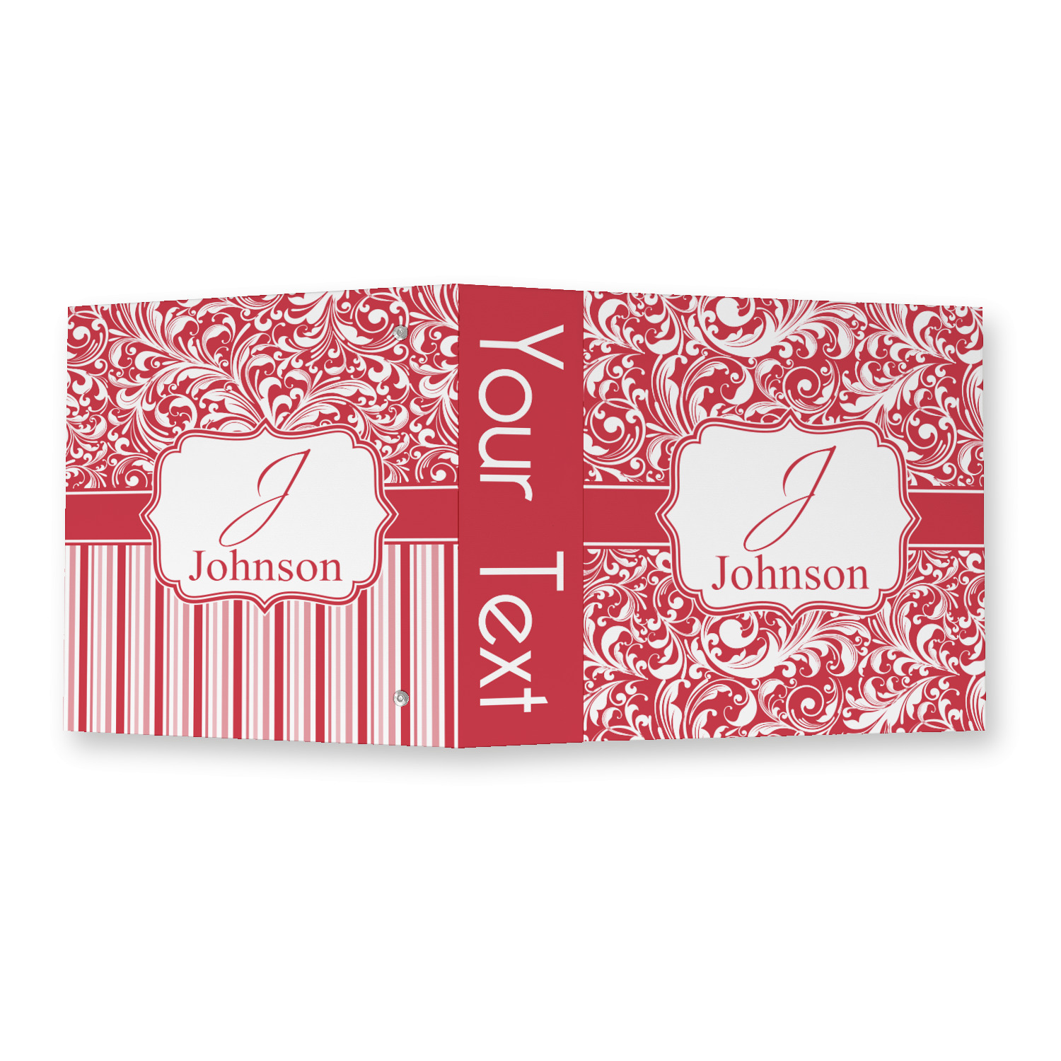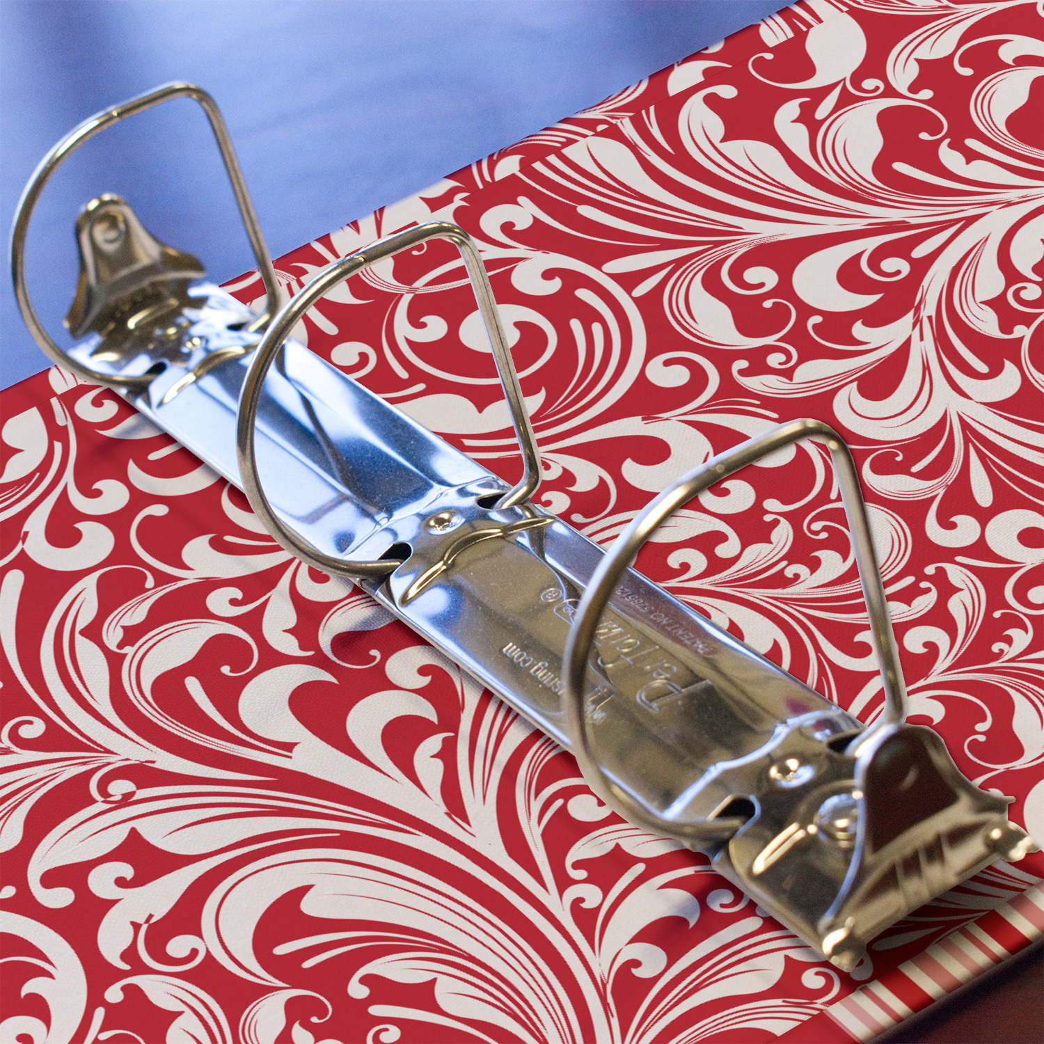 Made from a sturdy cardboard base with a full high quality canvas textured vinyl wrap with the design of your choice. Unlike our standard 3-ring binder with the full wrap design your artwork wraps from the front and back and into the inside of the binder.