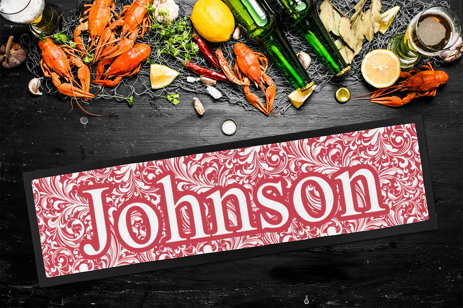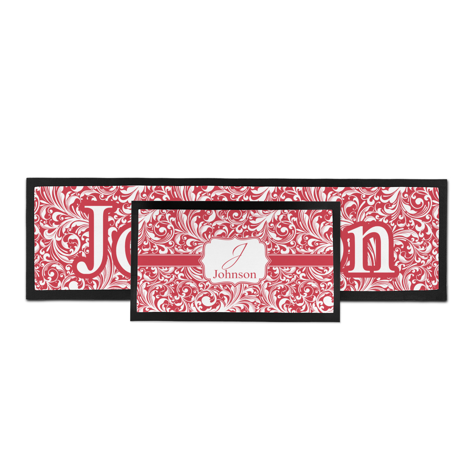 This fun and flirty pattern is available in multiple colors. The design has a classic ribbon in the color of you choice trimmed in white. The decorative white label is trimmed in the color of your choice. Add an initial and a name for that personal touch to pull the entire design together.