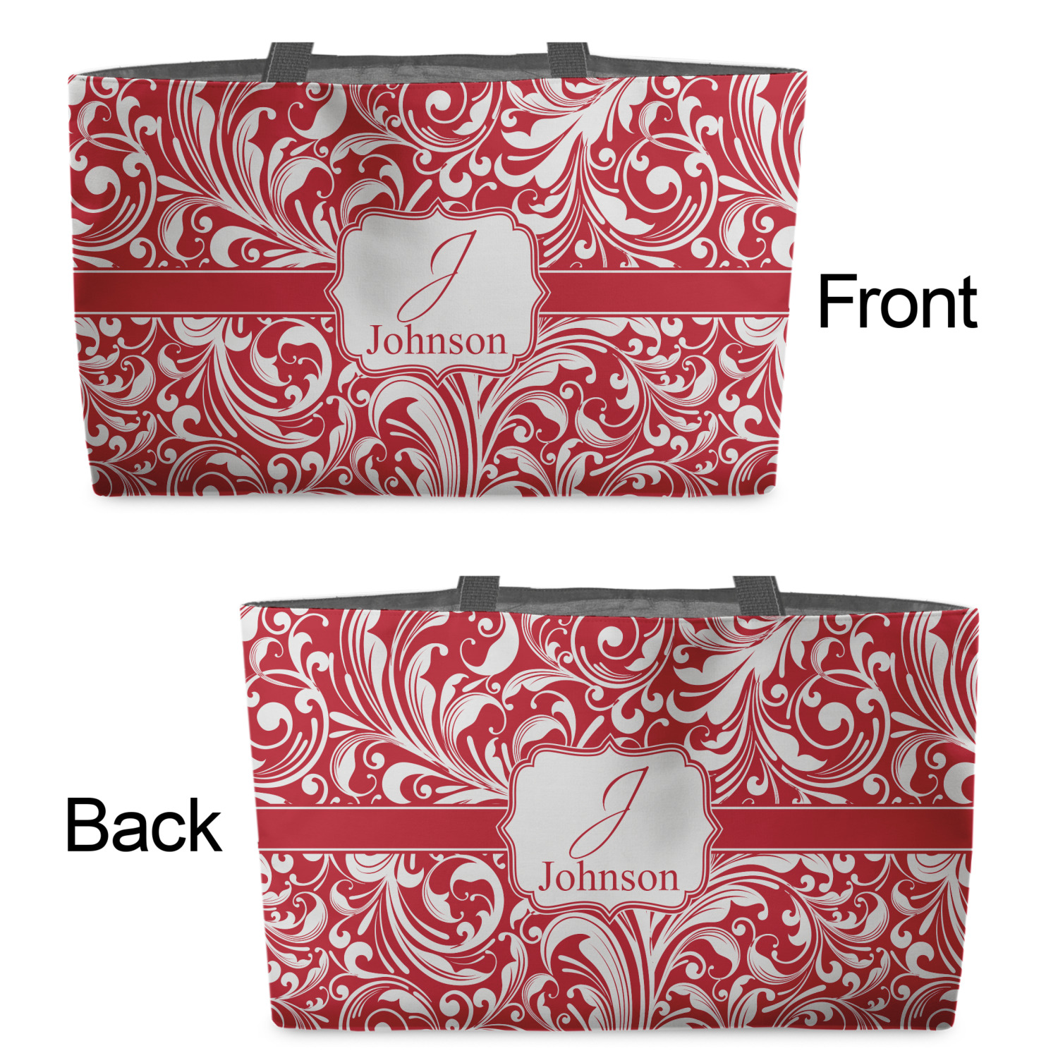 You can design the totes with a design on the front and another one on the back. The two designs can be identical or completely different. The choice is yours.
