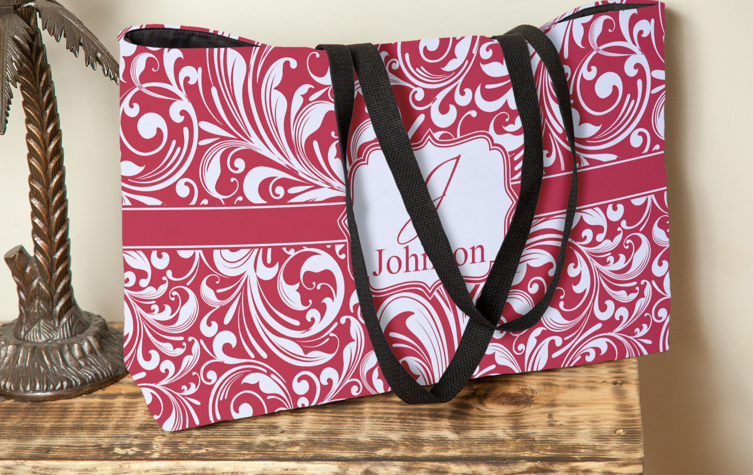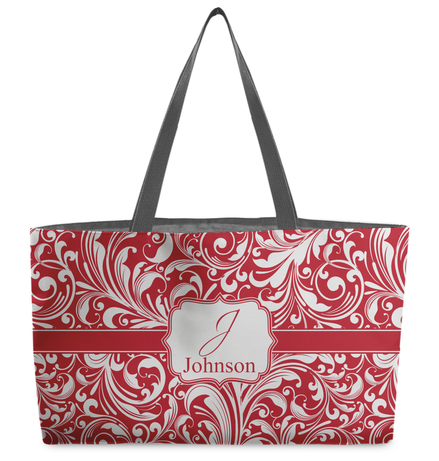 These beach totes are handmade here in the USA. Fabric is printed with your design. The tote is then sewn from the fabric pieces, lining and handles added.
