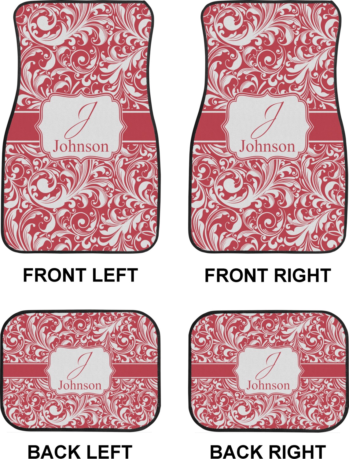 We craft our auto floor mats mats from polyester, apply a black finish to the edges, and lined at the bottom to prevent slippage. These mats protect your floors from grass, mud, and any accidental spills. We display your personalized design on the front face of each mat. The sizes of these car floor liners are standardized to provide a versatile fit for all vehicles. The front rows car mats measure at 17 by 26.5 inches, while the back rows measure at 17 by 13 inches. We sell three packages of car floor mats. You can purchase a pair of front row car mats, a pair of back row car mats, or a set of front row and back row car mats. To make an informed purchase, we recommend measuring the surface area of your car floors.