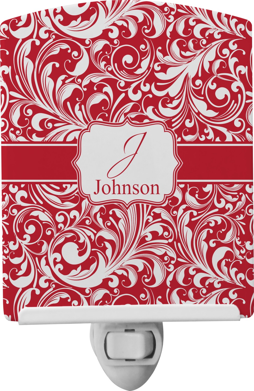 This baby night light is made of durable, ceramic plate that displays your customized design beneath a glossy finish. When this light is turned on, your personalization glows in the dark and offers a bit of light to any room or hallway. The plate also rotates easily. This plug-in night light has a white base with a convenient on and off switch. Additionally, the rotating plug allows you to plug them into US sockets horizontally or vertically. If your child outgrows the design years into the future, you can easily unscrew the plate and use it as a plain nightlight. With your purchase of this outlet night light, we include a 7-watt bulb.