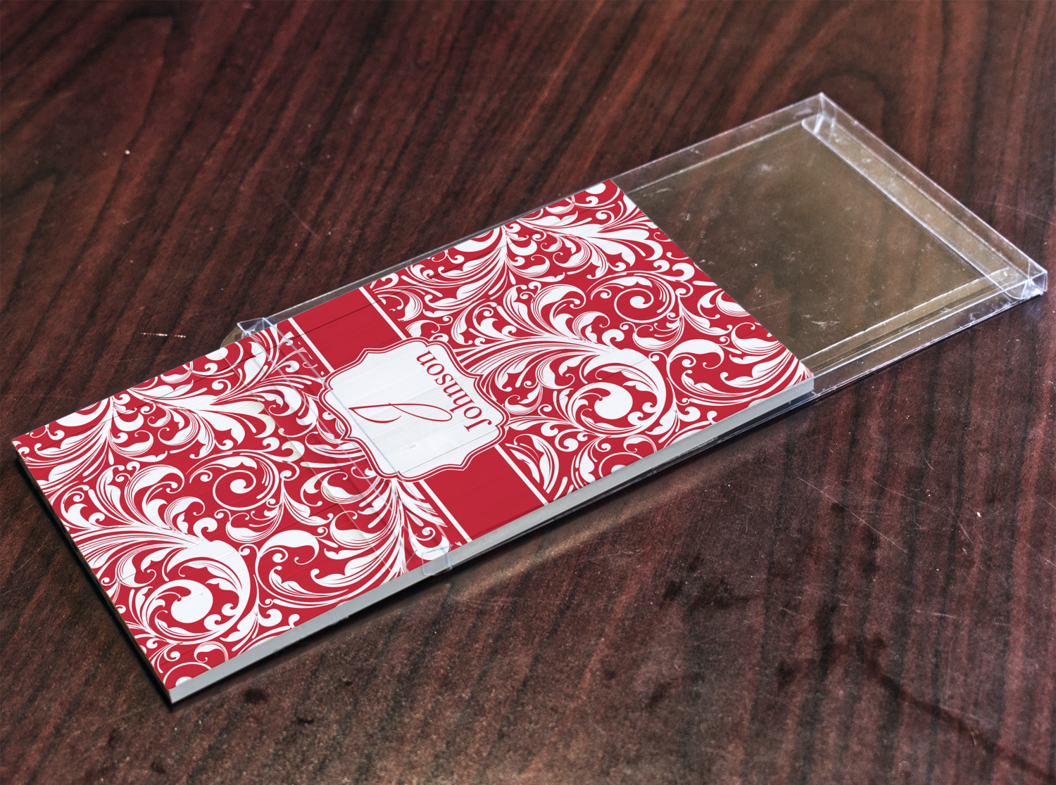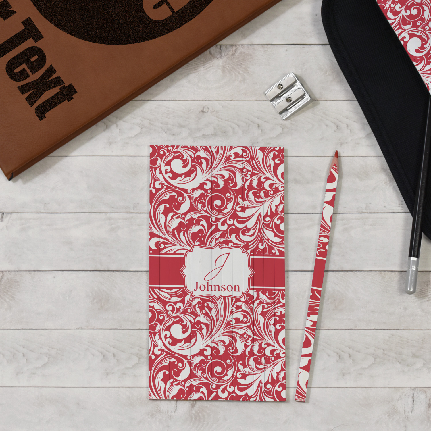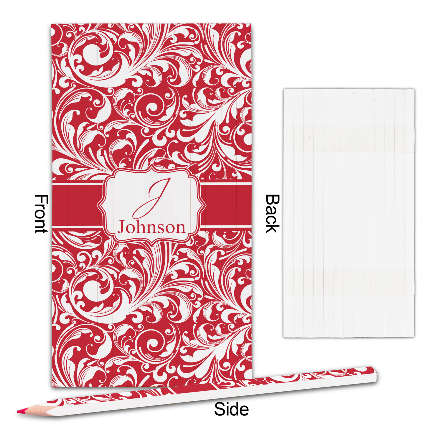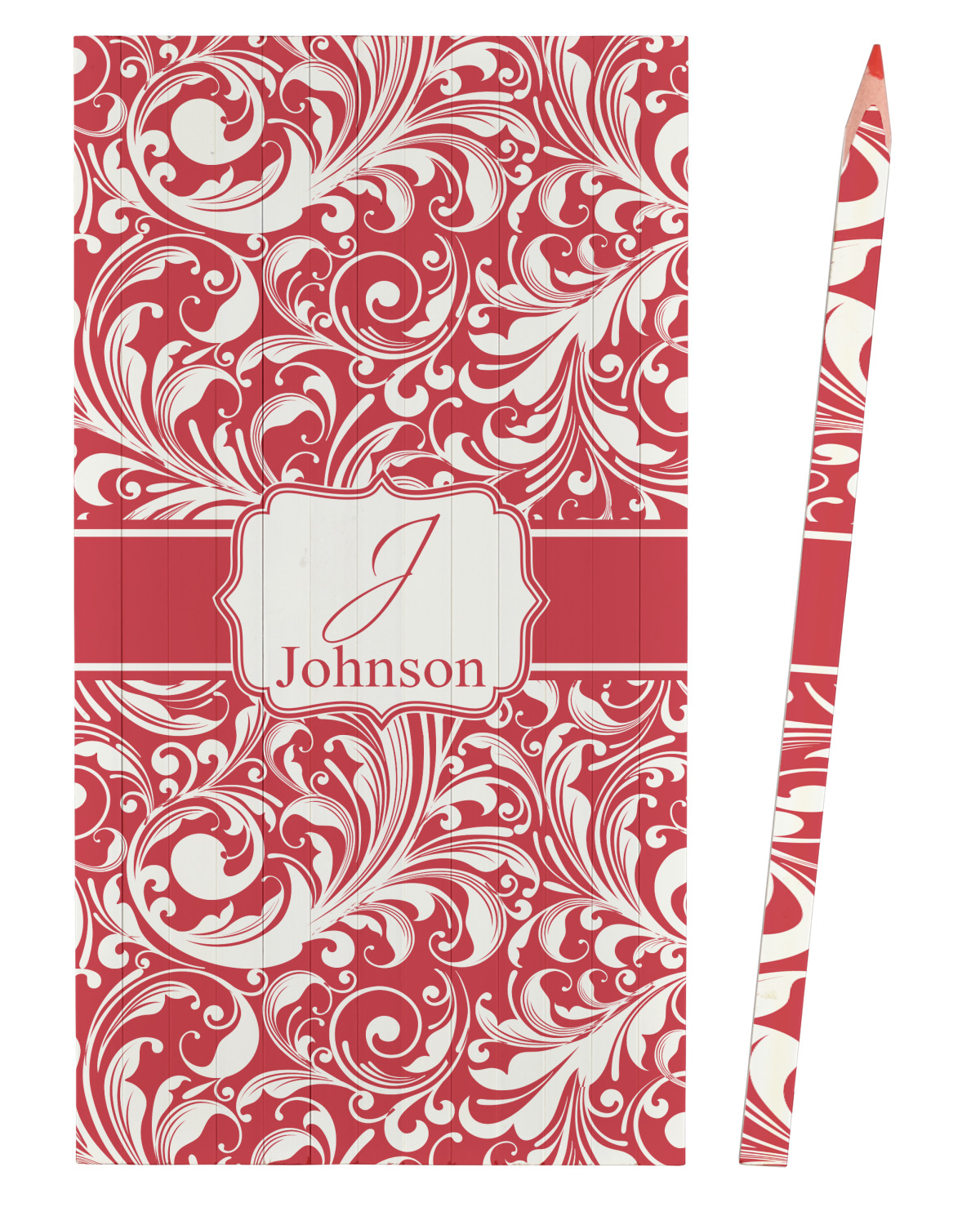 This fun and flirty pattern is available in multiple colors. The design has a classic ribbon in the color of you choice trimmed in white. The decorative white label is trimmed in the color of your choice. Add an initial and a name for that personal touch to pull the entire design together.