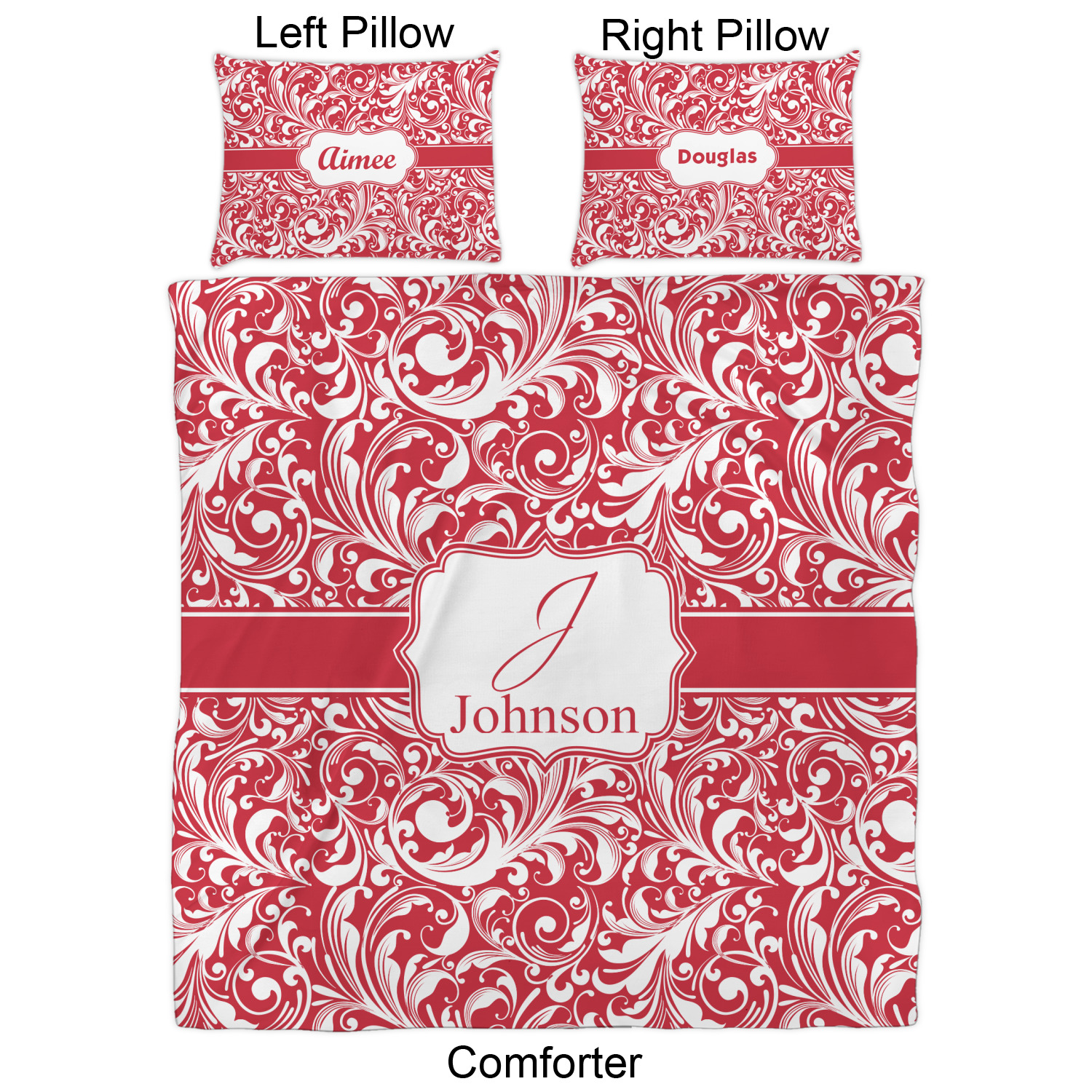 We have hundreds of different design templates for you to choose from Each design can be customized to your exact specifications. Not only can you customize the comforter, but you can also customize each pillow sham e.g. for a queen comforter set you have have Mr & Mrs pillow shams with the last name on comforter.