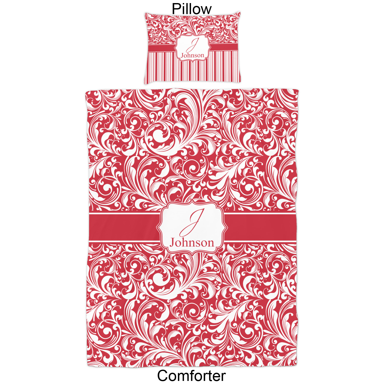 We have hundreds of different design templates for you to choose from Each design can be customized to your exact specifications. Not only can you customize the comforter, but you can also customize each pillow sham e.g. for a queen comforter set you have have Mr & Mrs pillow shams with the last name on comforter.