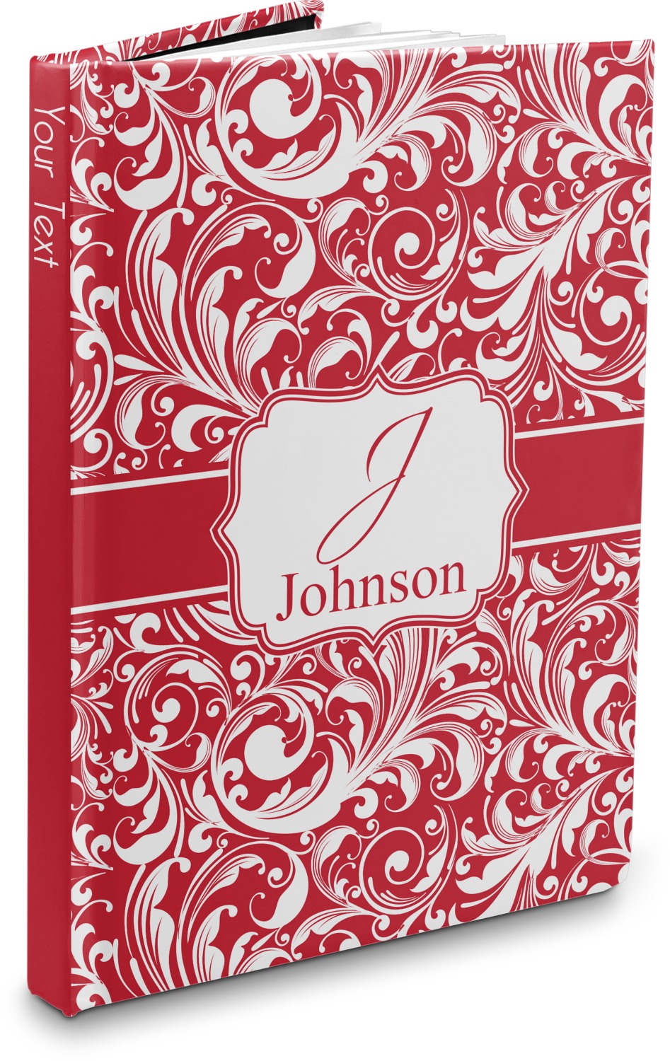 The hardcover of this personalized journal is covered with a smooth, matte, laminate coating. The unique laminate of the covers gives the hardcover notebook a smooth, sleek feel. Filled with 75, lined, white pages, this hardbound notebook has enough room for your reminders and notes. For your convenience, the pages have been perforated, which guarantees an easy tear and removal. Your customization is printed across the entire cover of the book, while the interior is black in color.