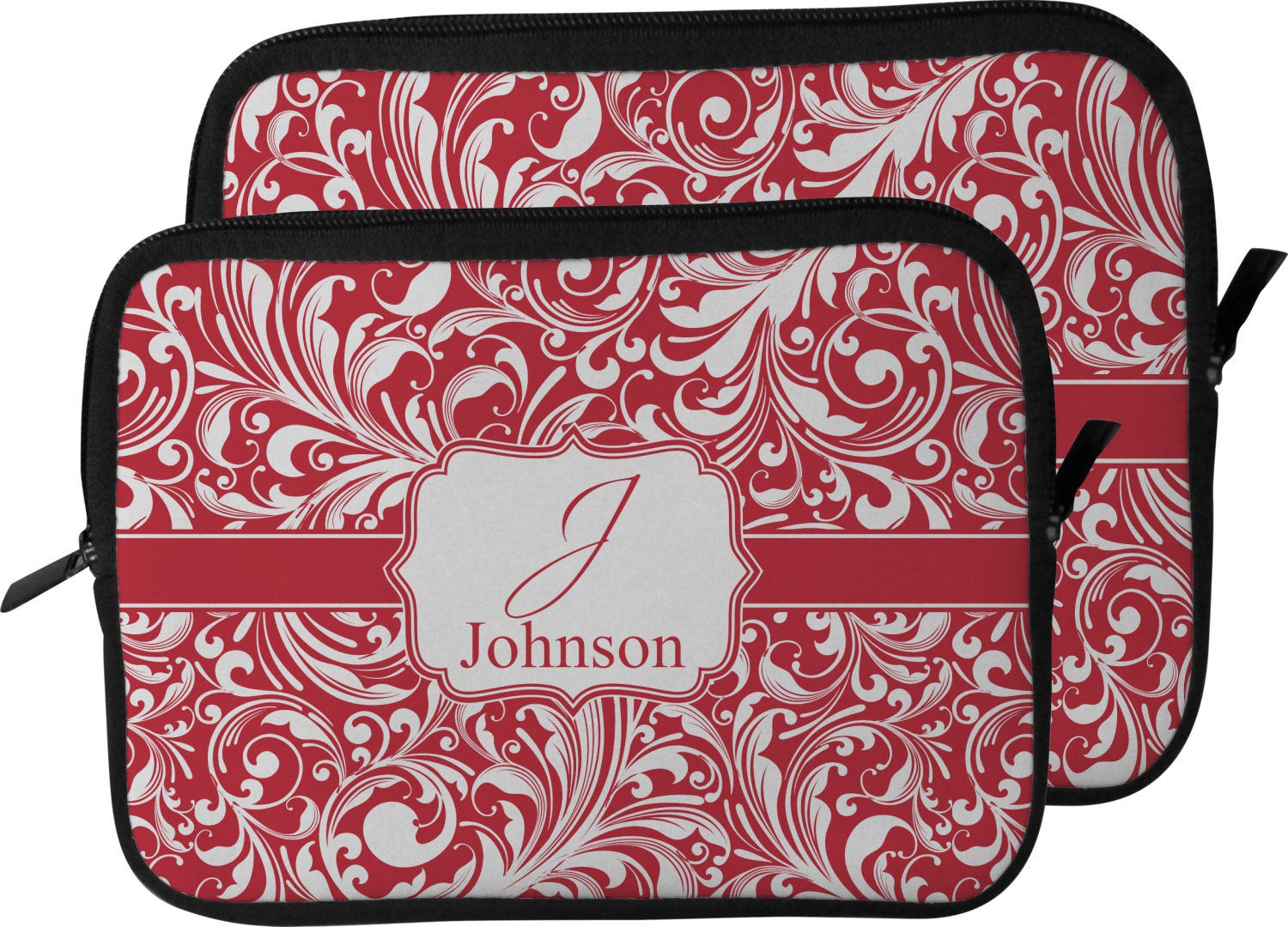 These laptop covers are built from a water-resistant, cushioned neoprene. We display your personalized design on the front of this computer sleeve, while the other sides are simply the black color of the neoprene fabric. A zipper lines the top half of this case, for direct access to your device. For added protection, the interior of this neoprene laptop sleeve is lined with a padded, minky-like material.