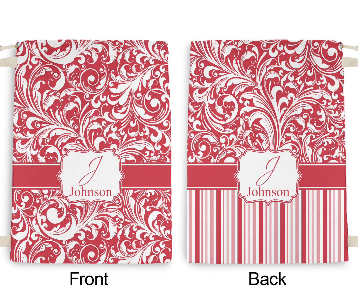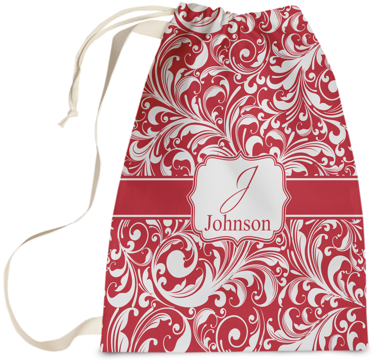 Carry your laundry in style with these customized laundry bags. Available in two sizes, featuring a natural colored woven strap and a cinch cord, these bags hold a lot of clothes or anything else you want to fit in them.