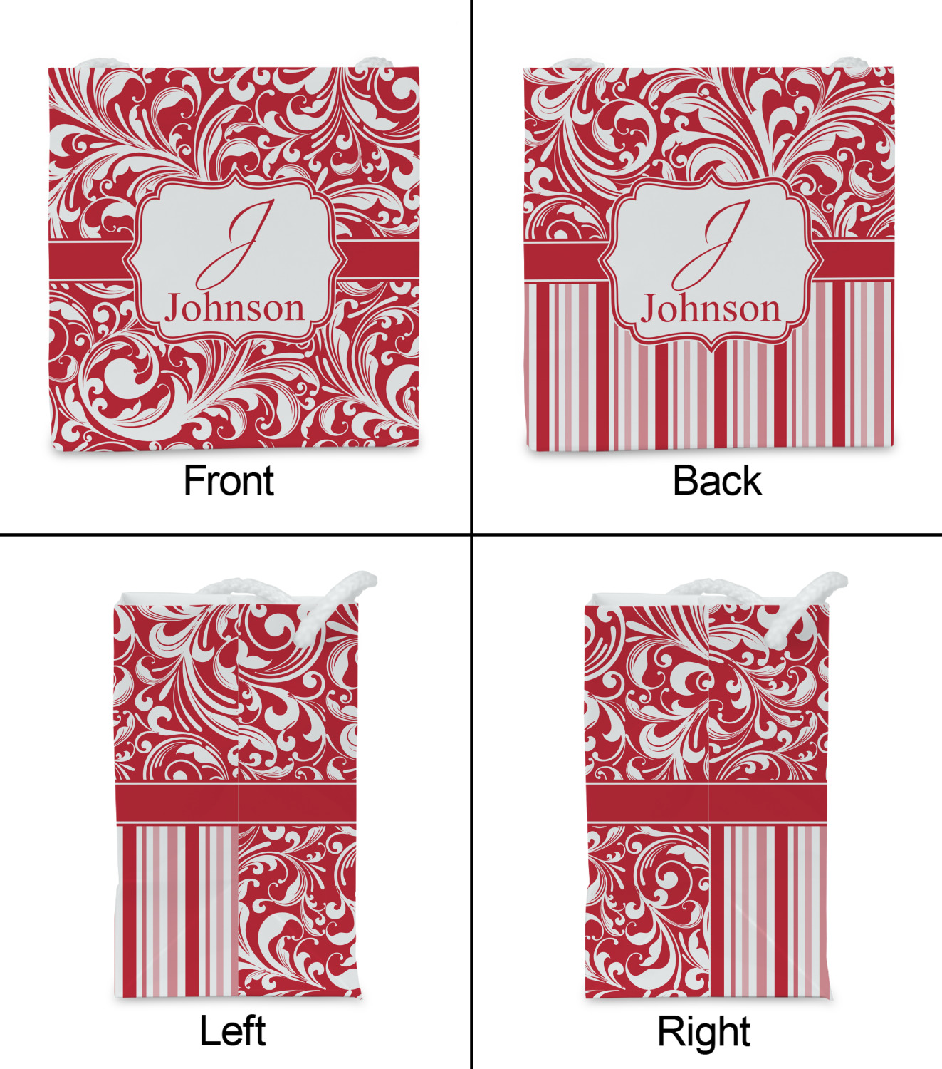 This fun and flirty pattern is available in multiple colors. The design has a classic ribbon in the color of you choice trimmed in white. The decorative white label is trimmed in the color of your choice. Add an initial and a name for that personal touch to pull the entire design together.