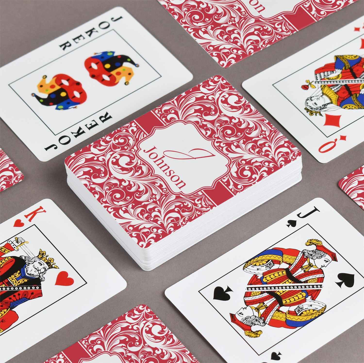 Here at YouCustomizeIt, you can customize your playing cards by uploading your own design, photo, or logo. We have design templates that you can customize by changing the patterns, colors, graphics, personalization styles, etc. - using our free for you to use in our design elements library.